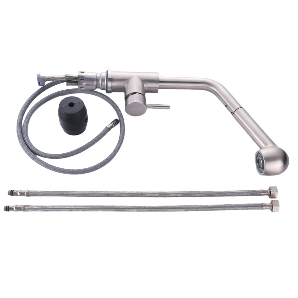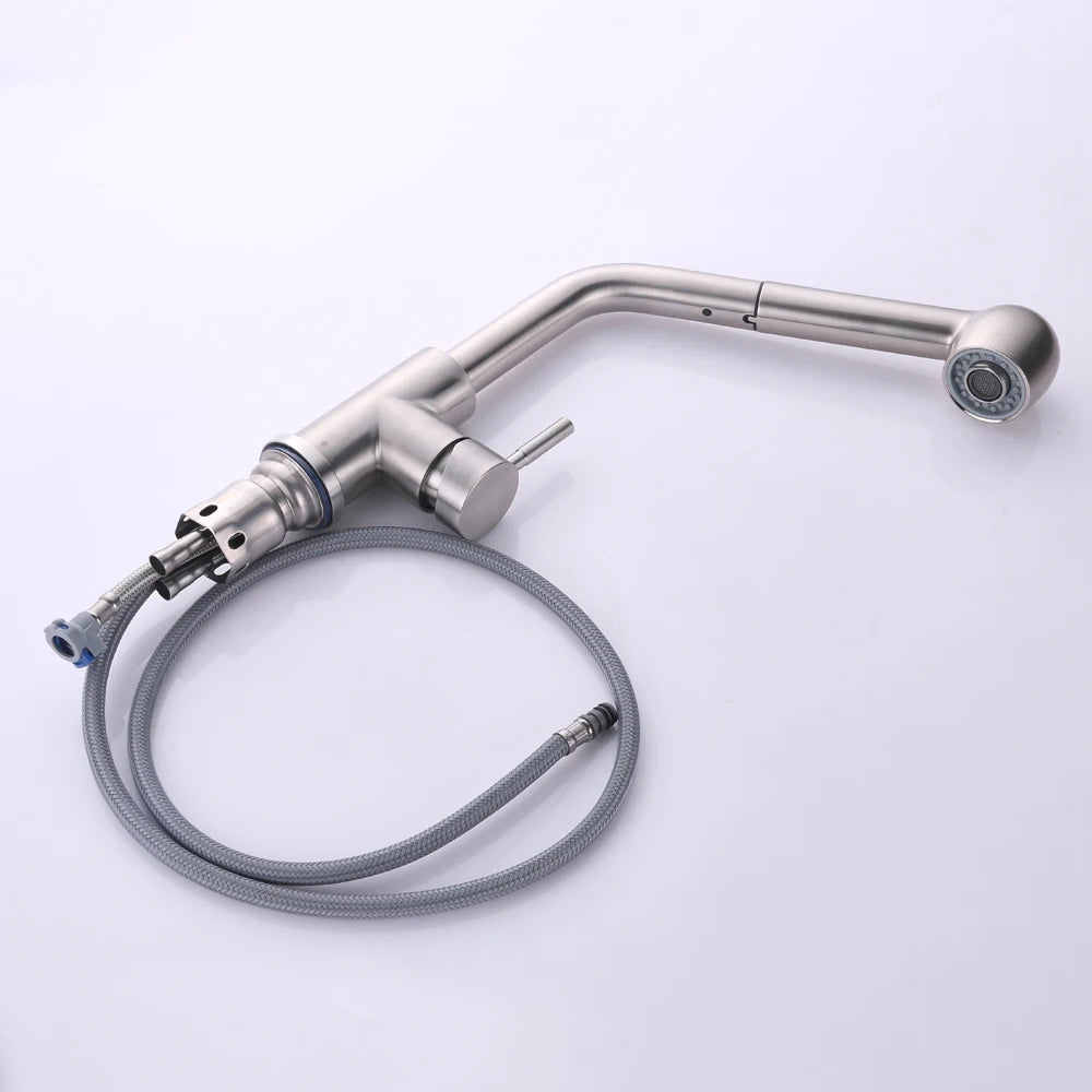 360° Rotating Retractable Sink Faucet Hot and cold Water Button Ceramic Valve Kitchen Stainless Steel Faucet with Shower