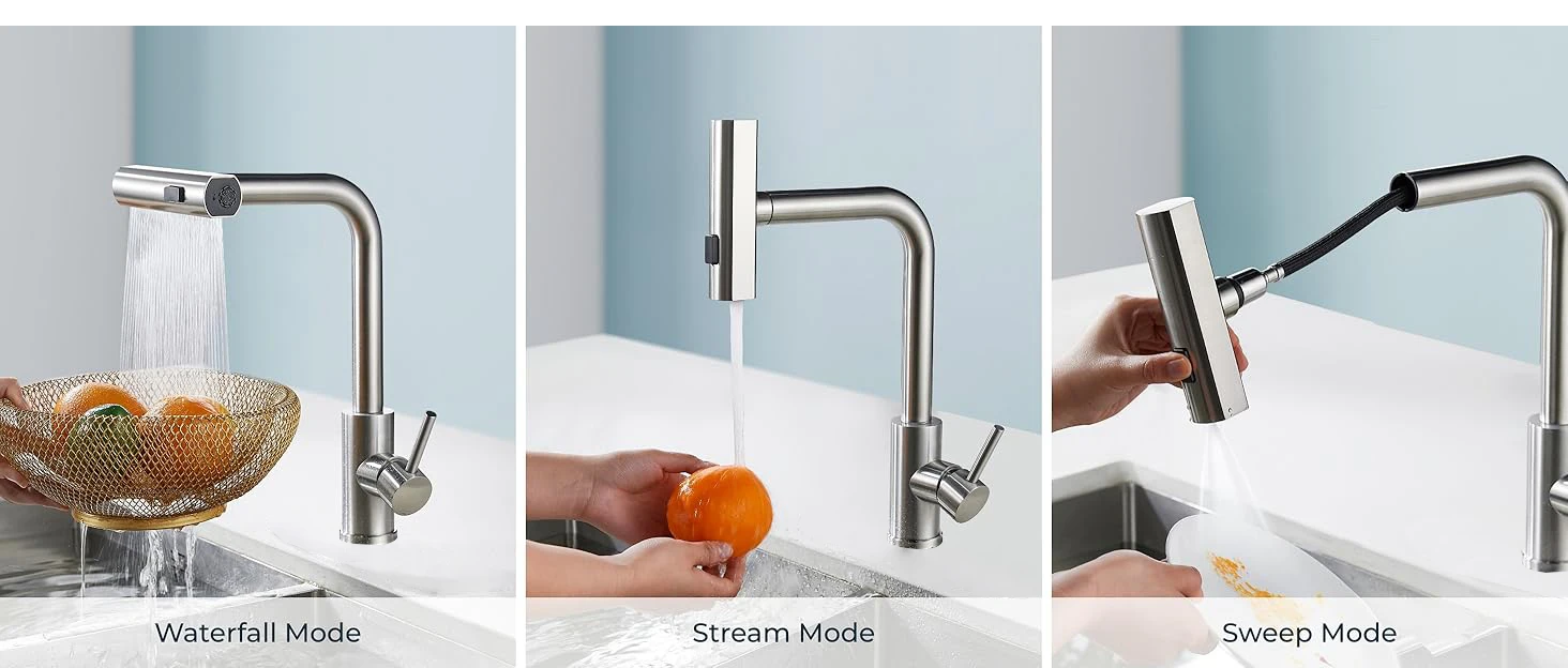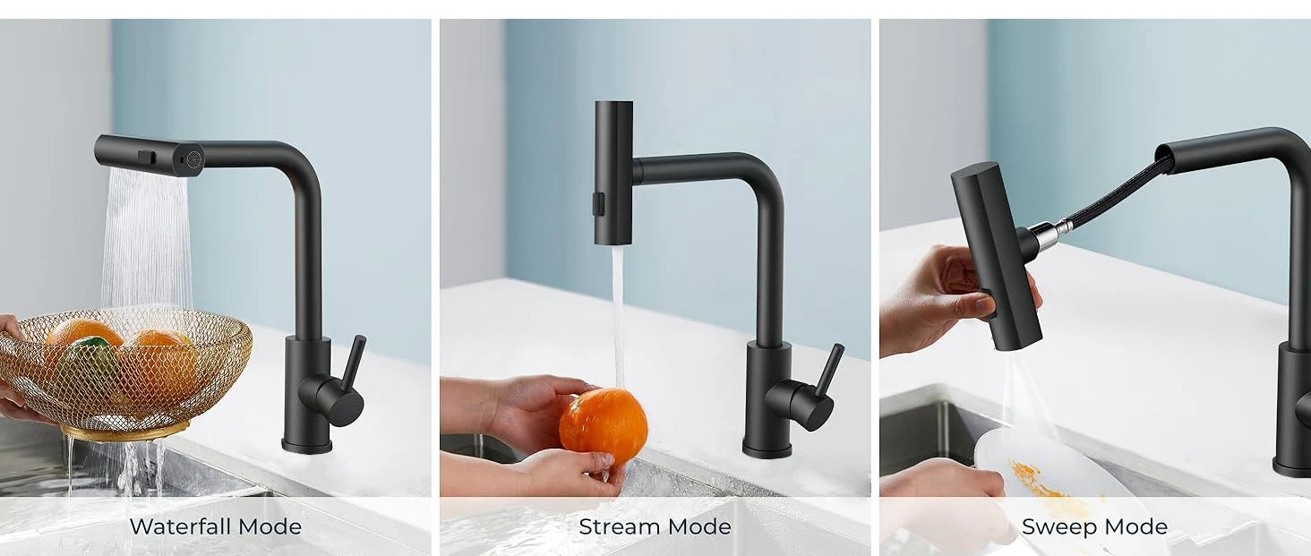 4 Modes Waterfall Kitchen Faucet Stream Sprayer Stainless Steel Hot Cold Single Hole Deck Mounted Water Sink Mixer Wash Tap 3668