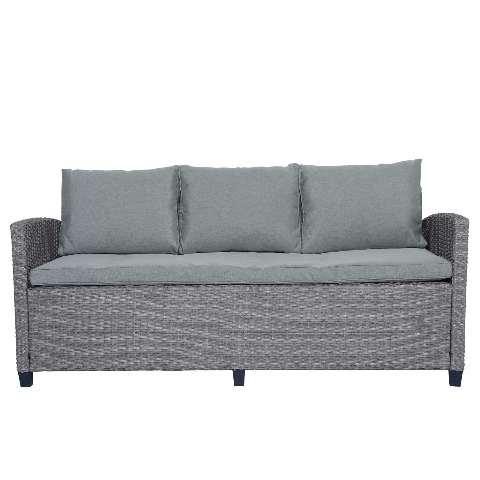 TOPMAX 6-Piece Outdoor Rattan Wicker Set Patio Garden Backyard Sofa, Chair, Stools and Table(Gray Rattan+Gray Cushion)