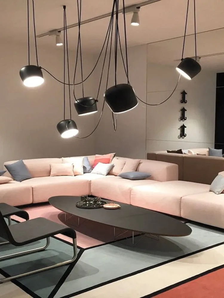 Aim pendant light Modern Drum Pendant Lamp For Living Room Bedroom Restaurant Bar Decor Creative black Long line chandelier