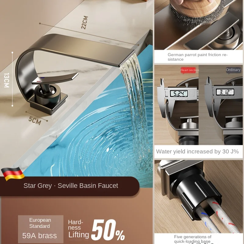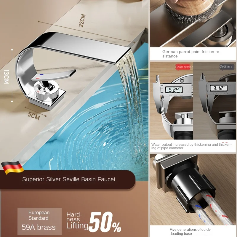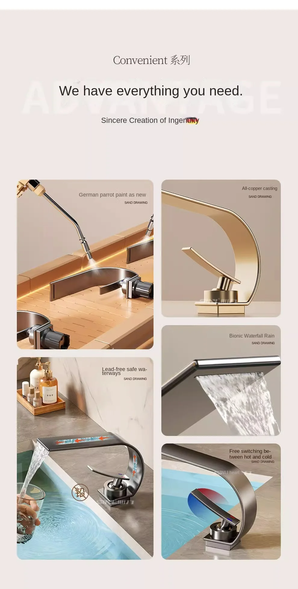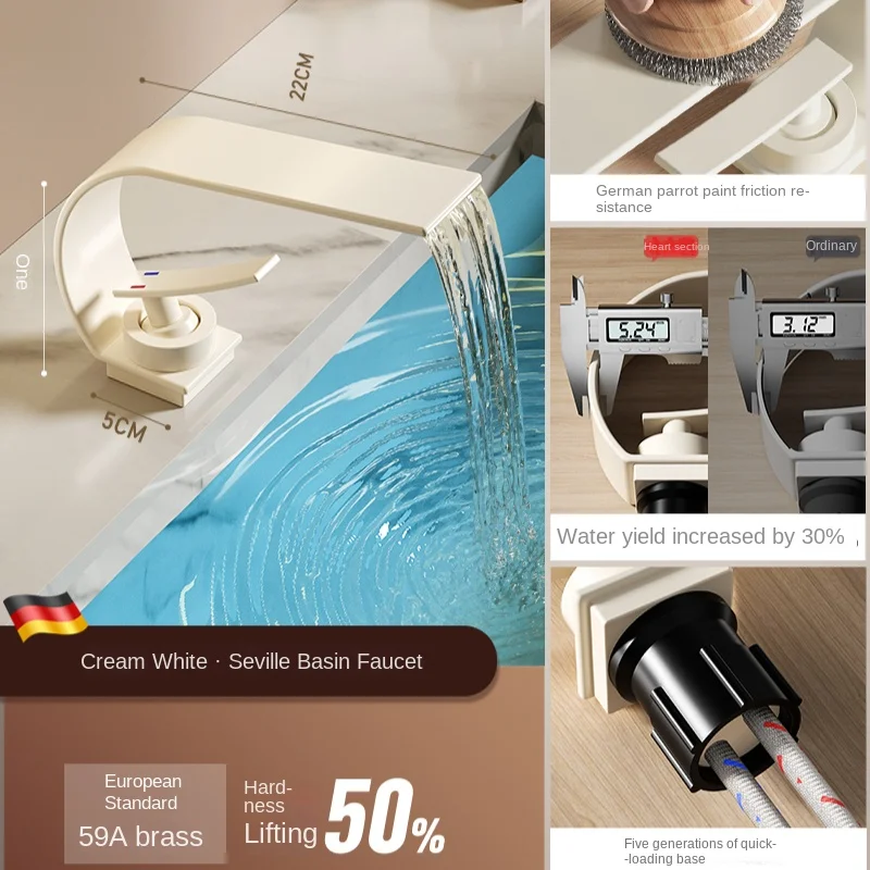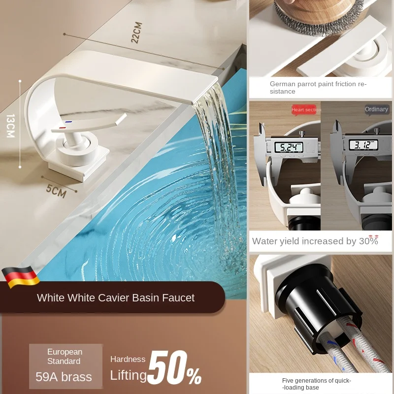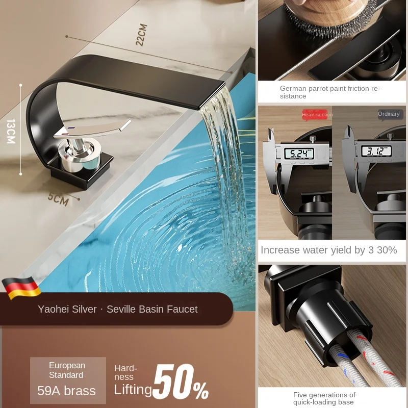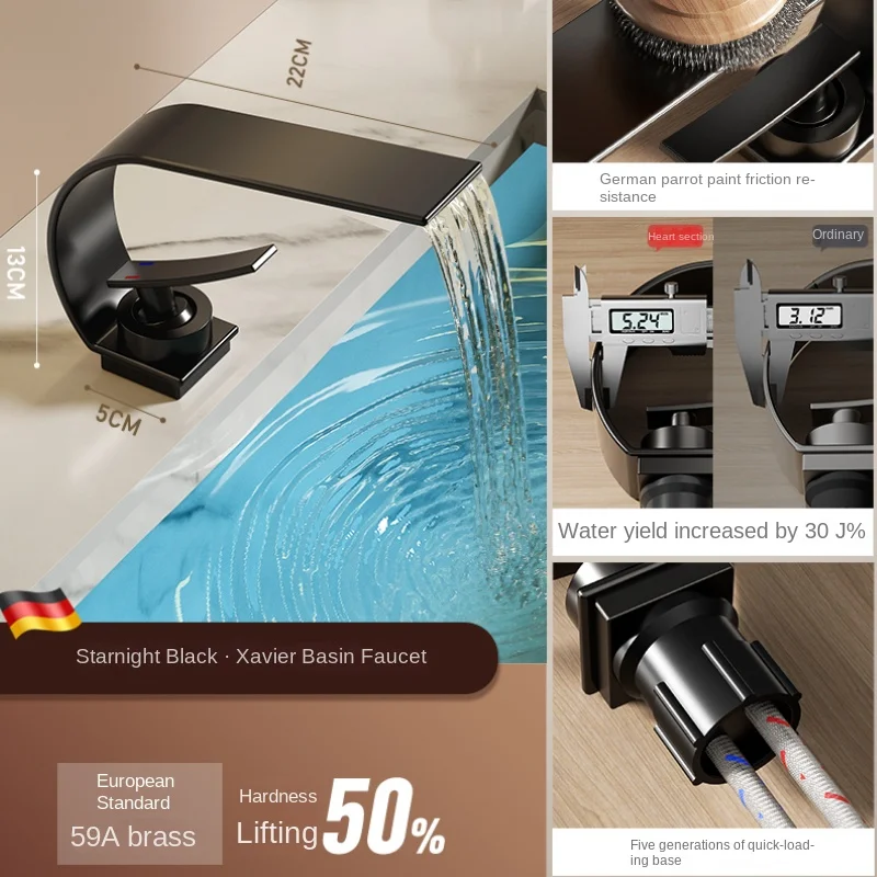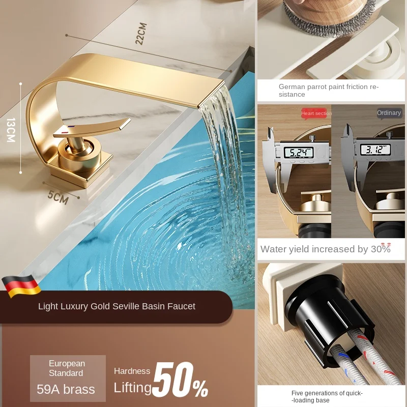 All copper waterfall faucet washbasin bathroom bathroom cabinet sink washbasin counter hot and cold water faucet minimalist
