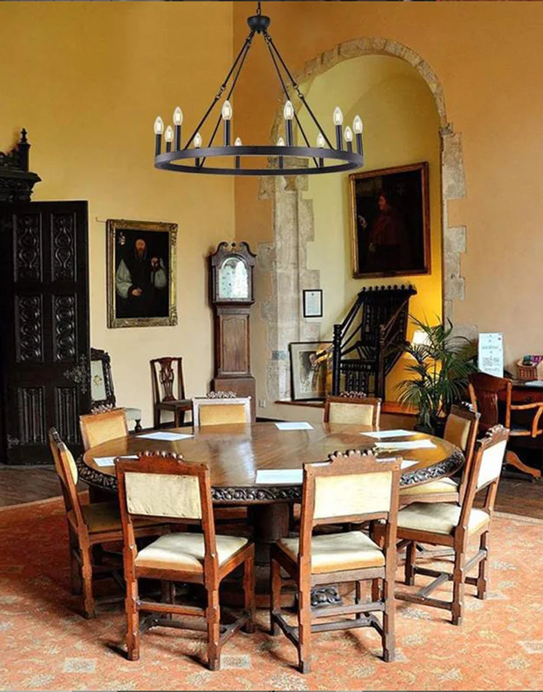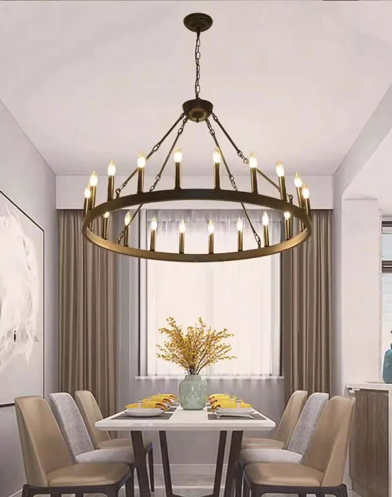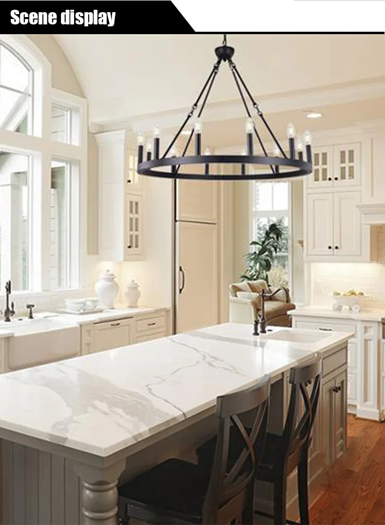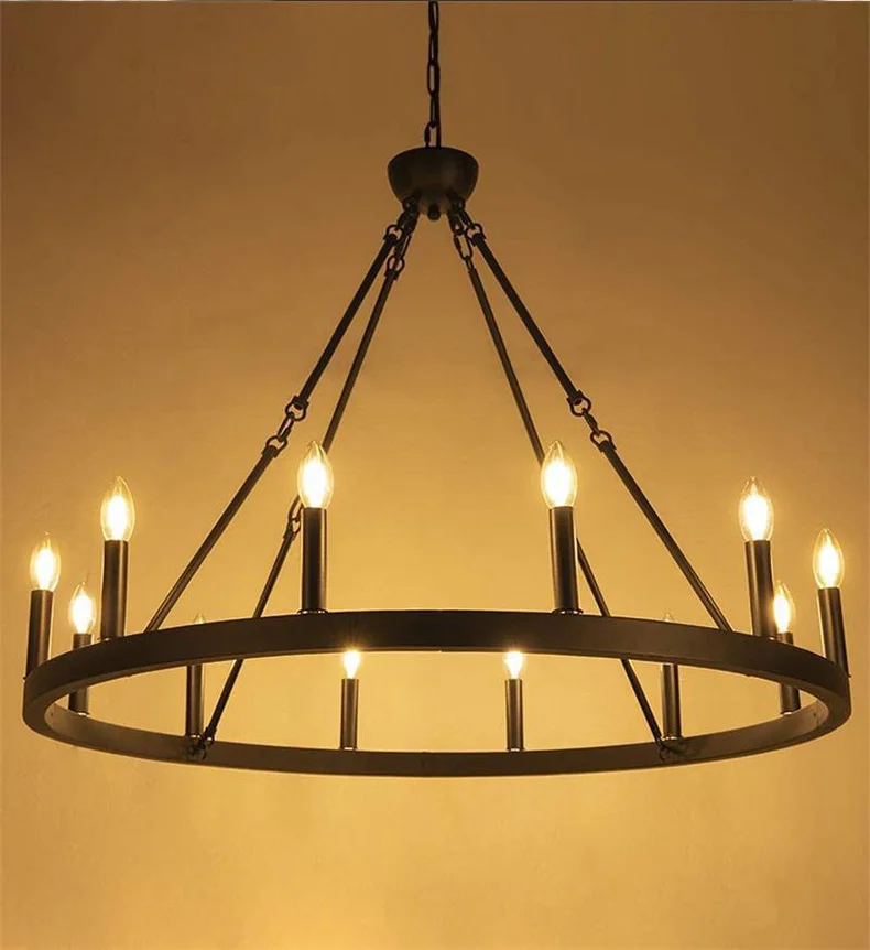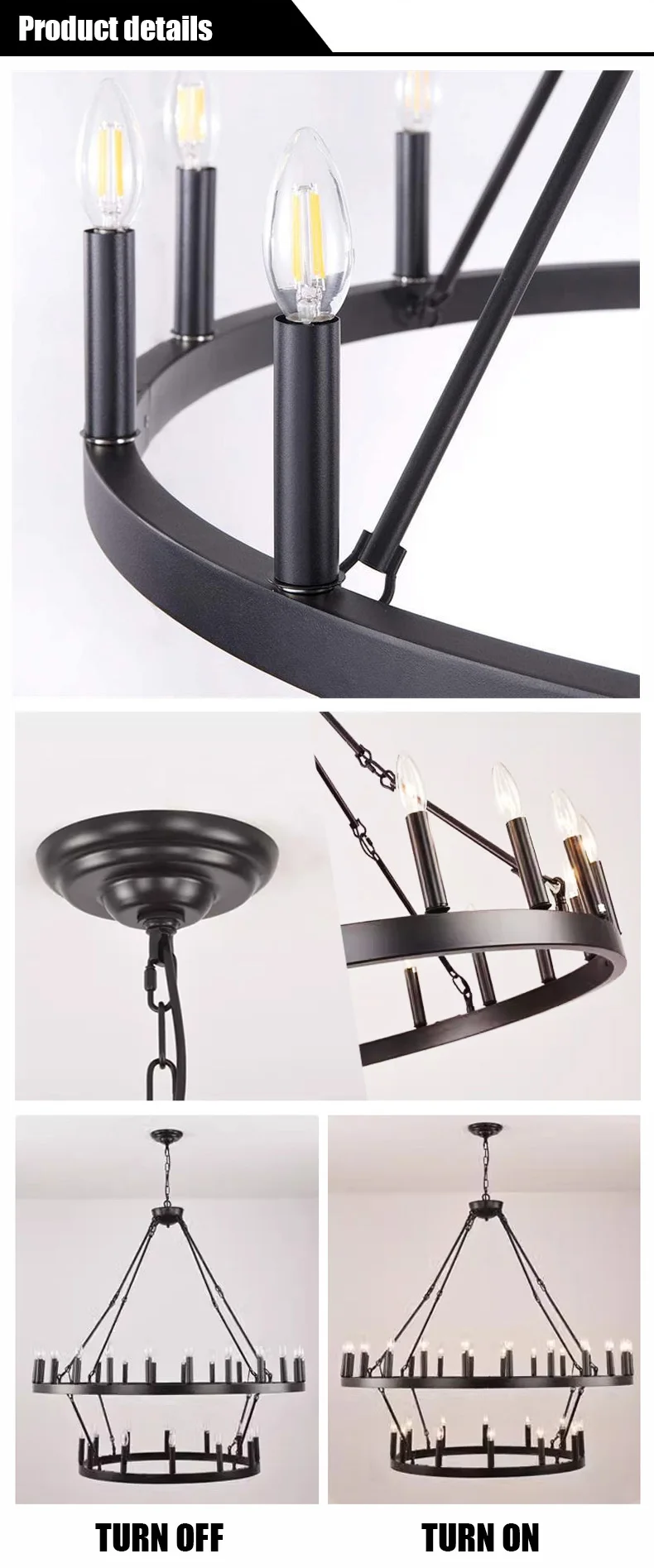America Retro Industrial Iron Round Led Pendant Black Metallic Hanging Living Room Cafe Restaurant Decoration Suspend Chandelier