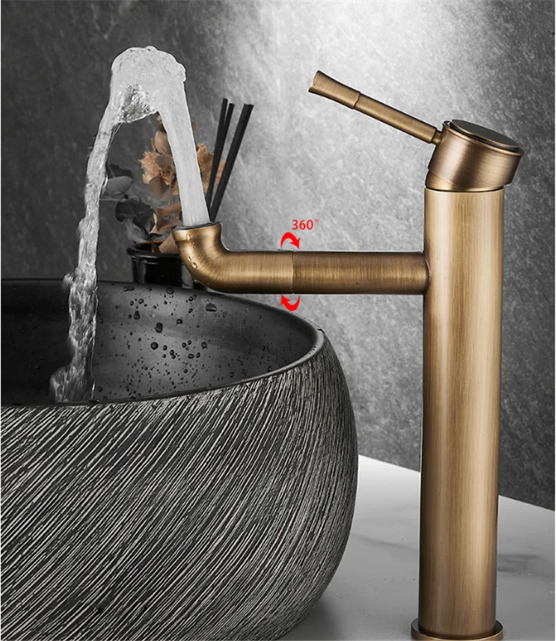 Antique Bronze Basin Faucets Bathroom Faucet Hot & Cold Brass Bathroom Sink Faucet Rotating Lavotory Faucet Mixer Water Tap