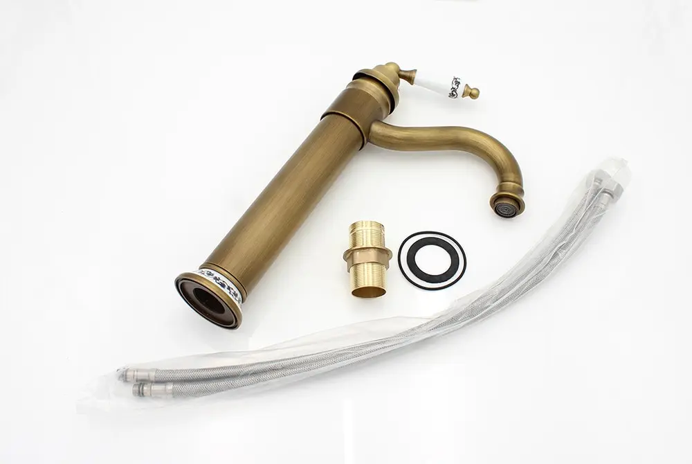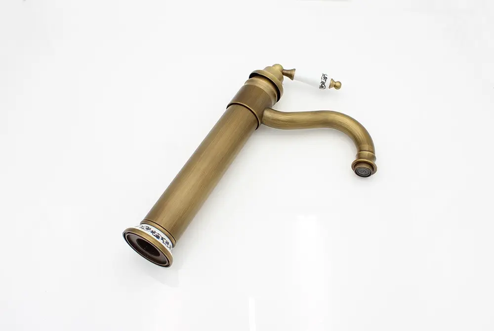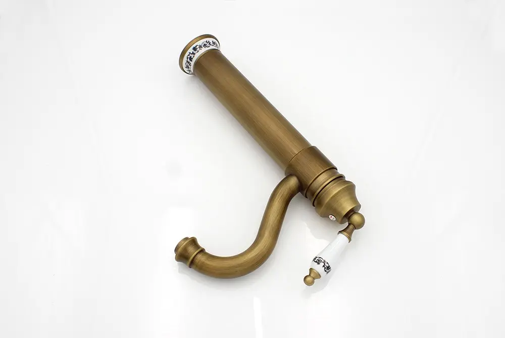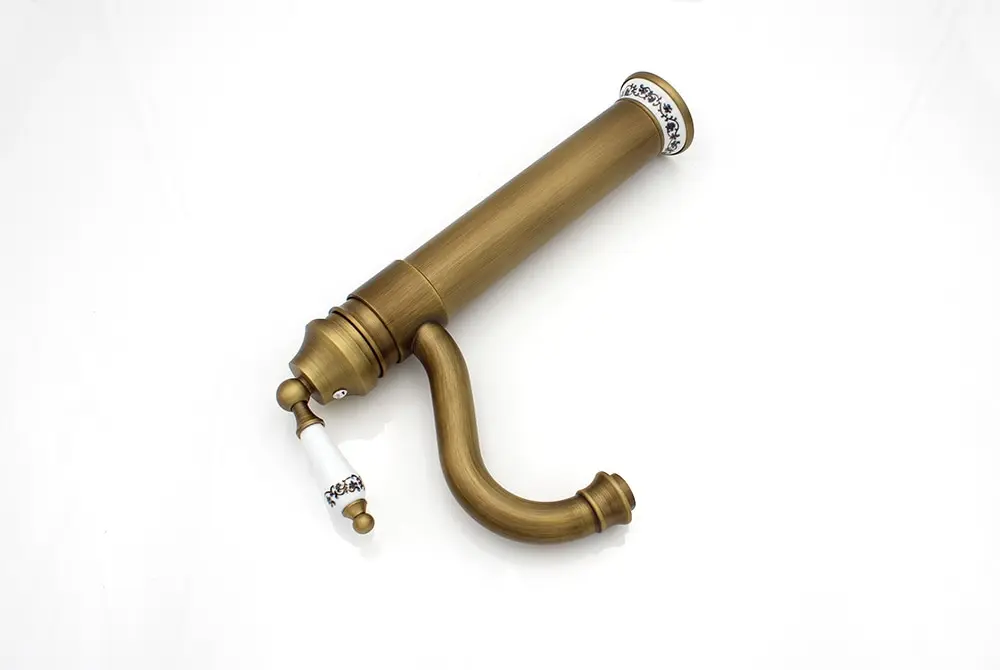 Antique Faucet Bathroom Basin Mixer 360 Rotation Spout Deck Mounted Wash Hot And Cold Water Taps ZR121