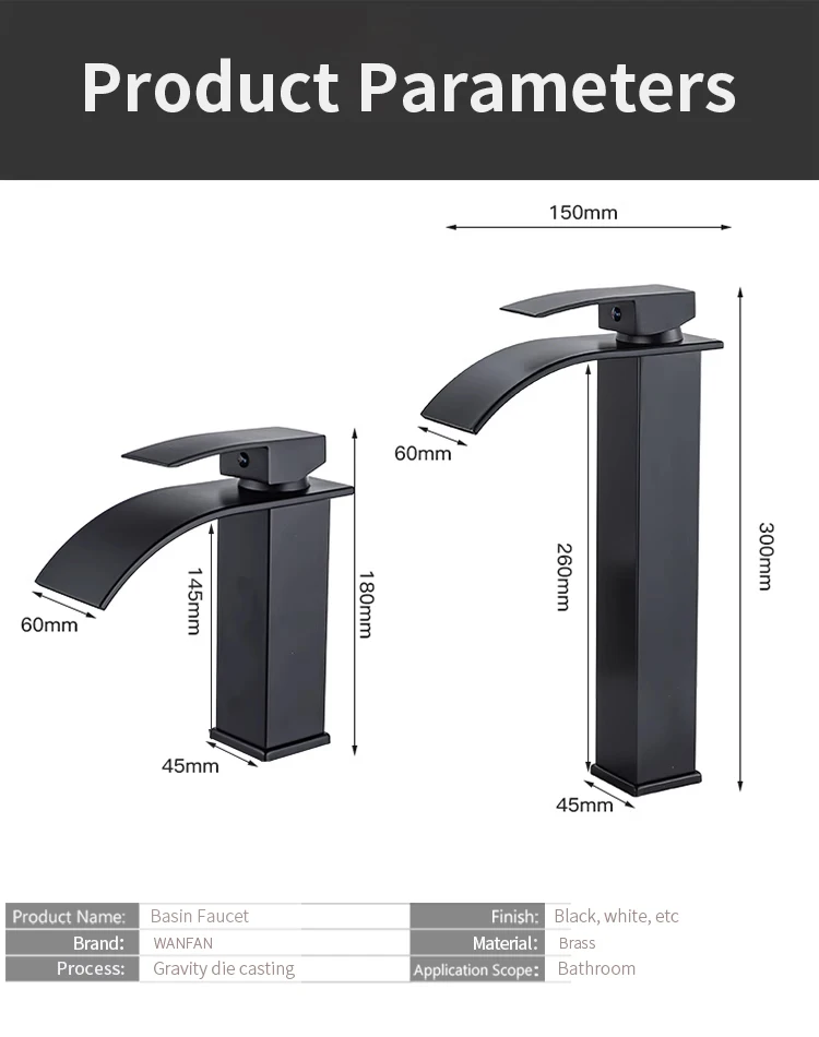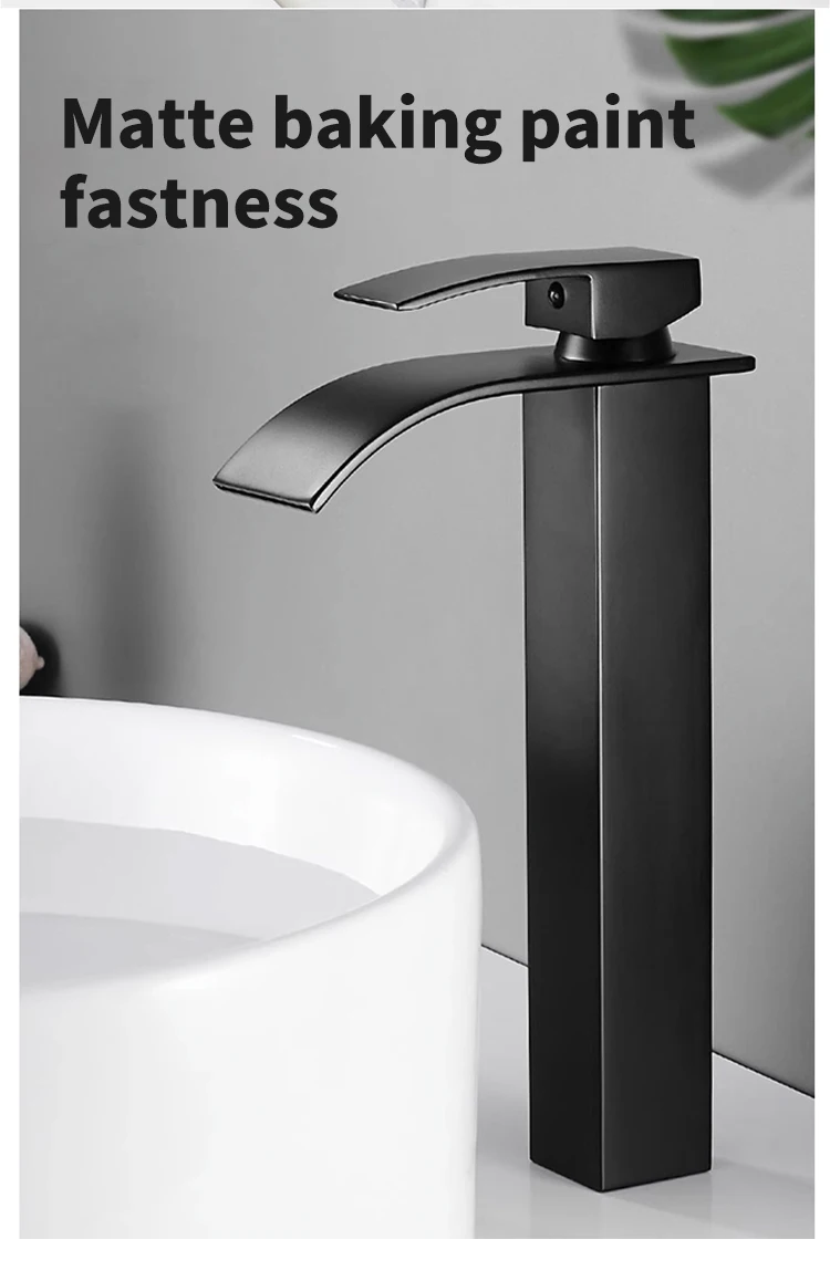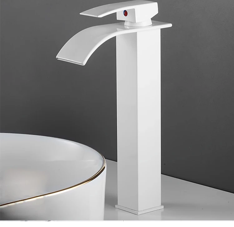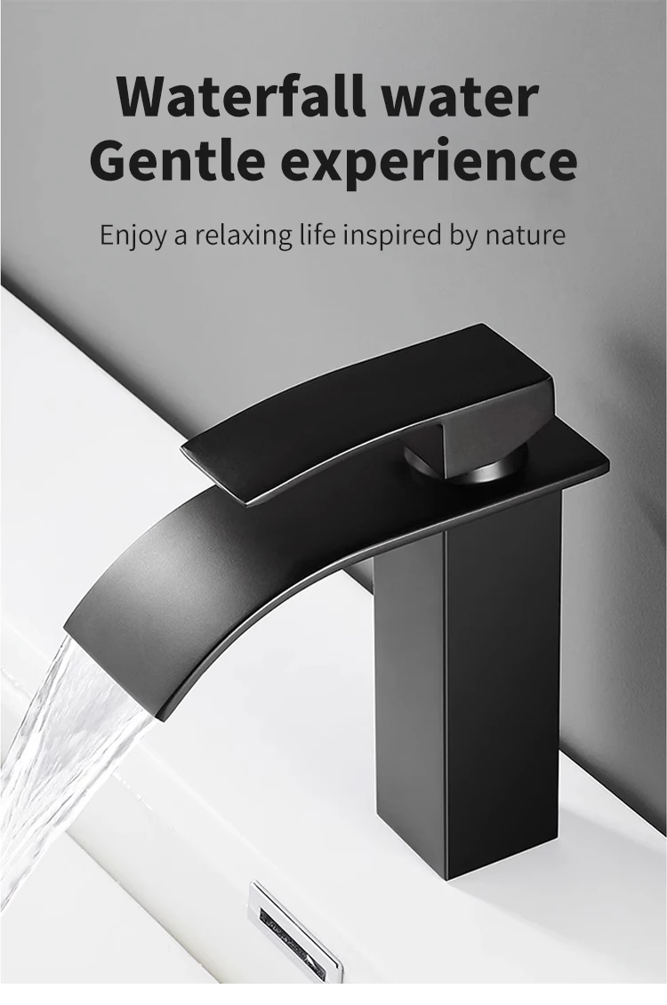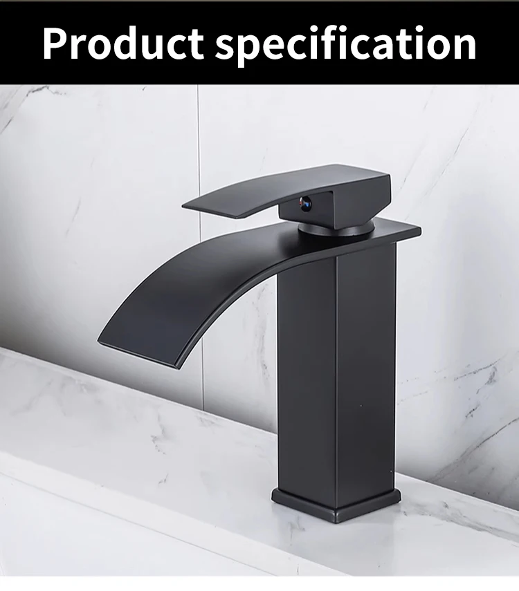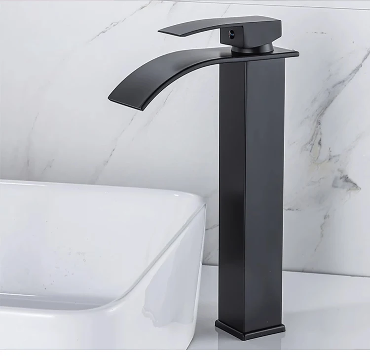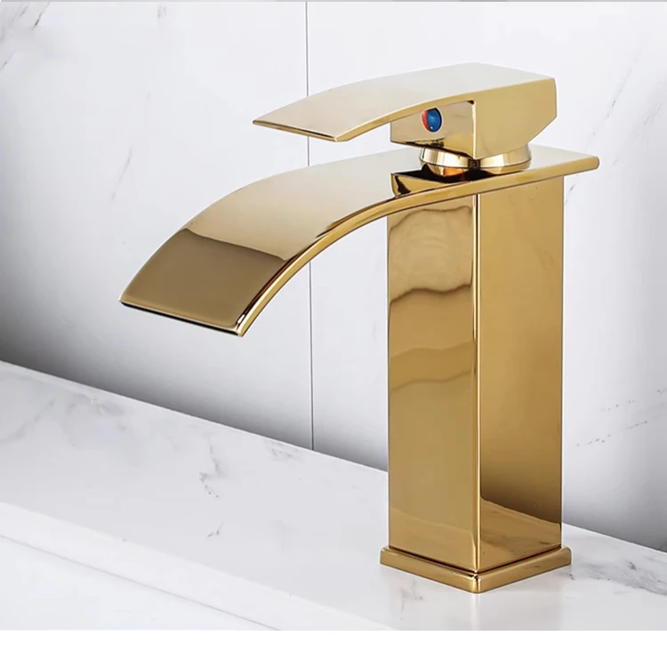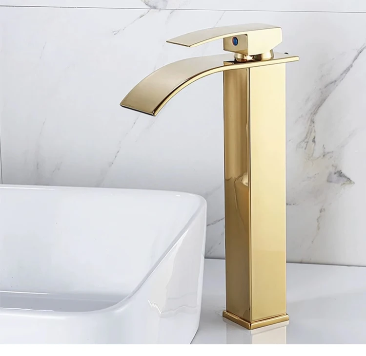 Basin Faucets Brass Gold Elegant Waterfall Bathroom Sink Faucet Single Lever Hole Deck Mount Big Square Spout Mixer Taps LT-503