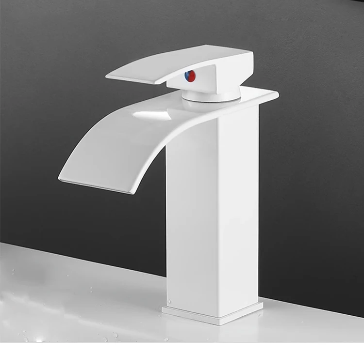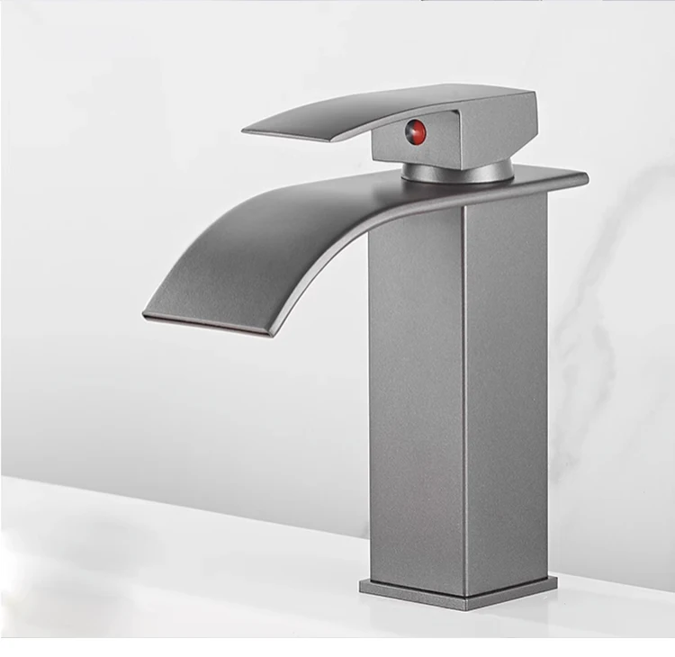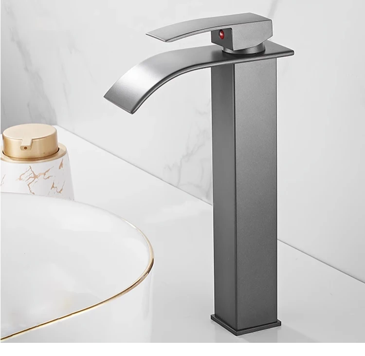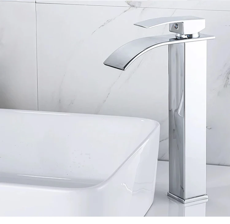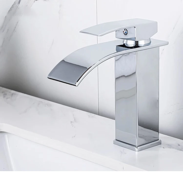 Basin Faucets Brass Silver Elegant Waterfall Bathroom Sink Faucet Single Lever Hole Deck Mount Big Square Spout Mixer Taps