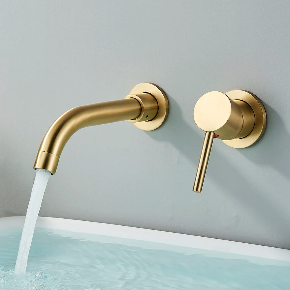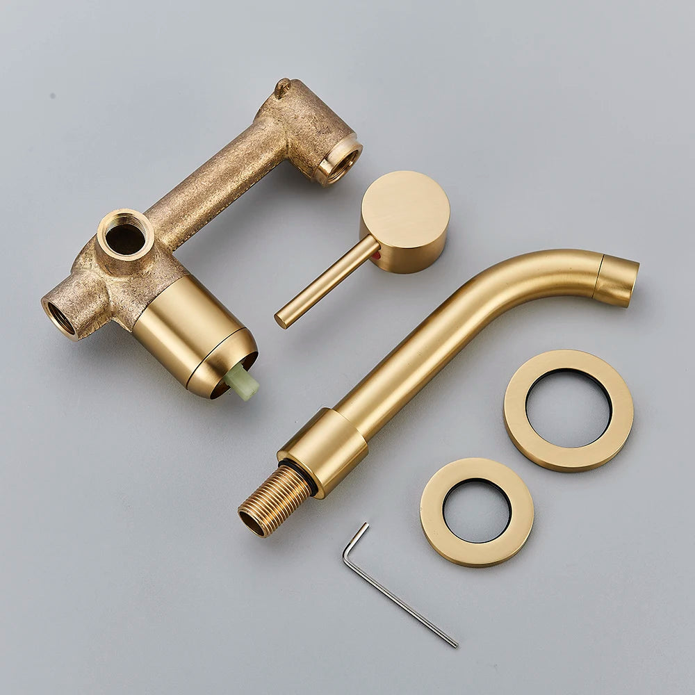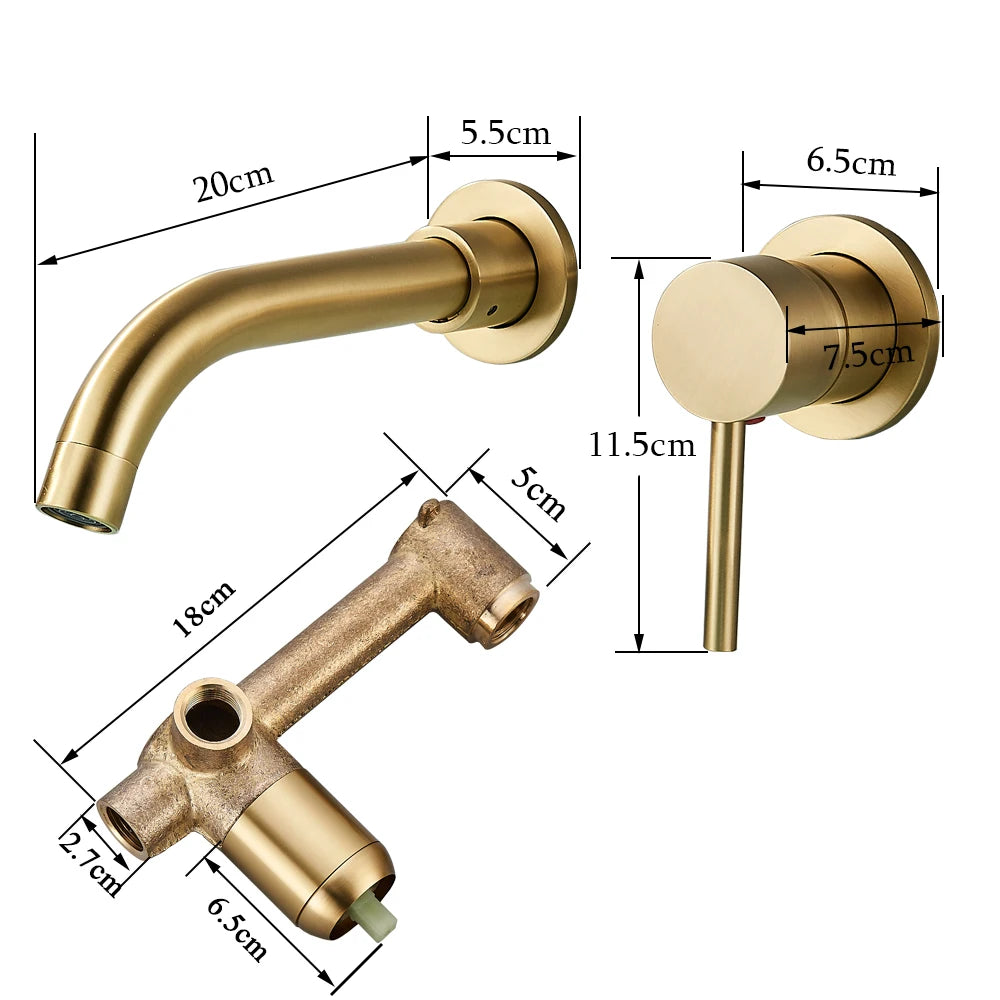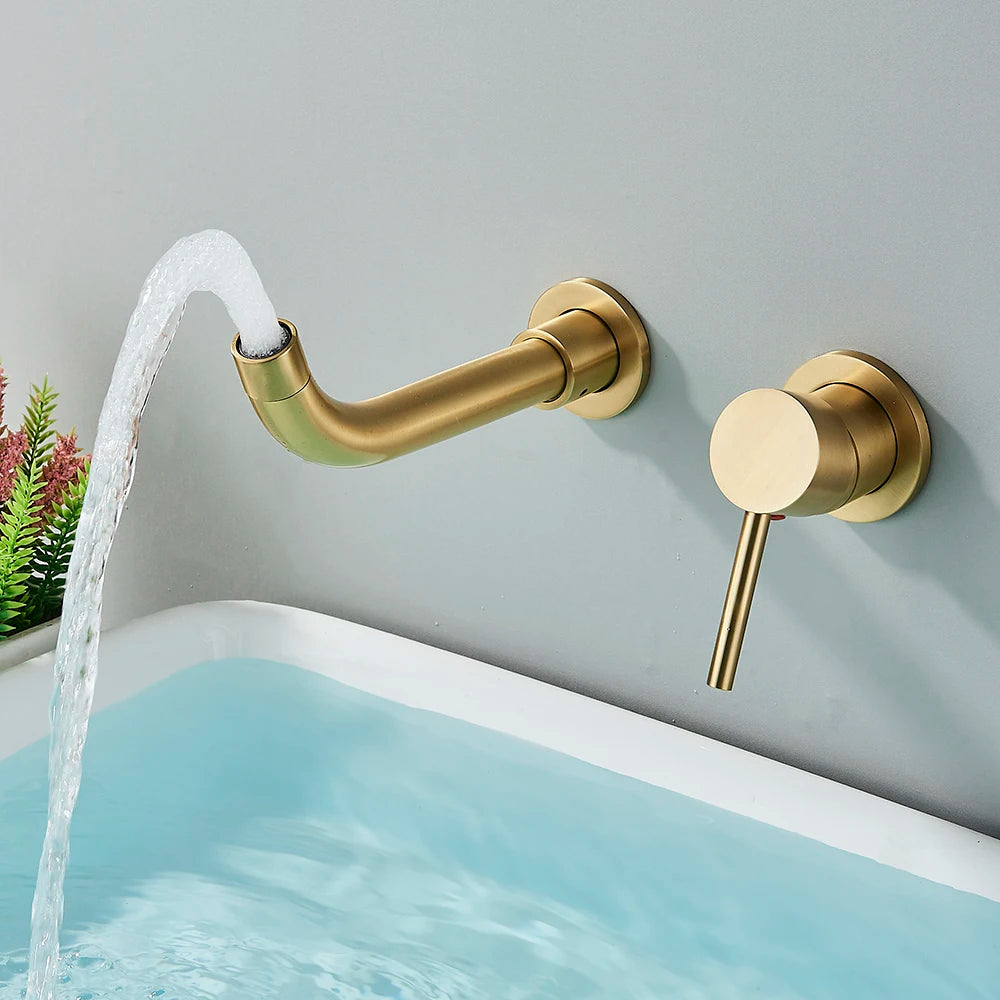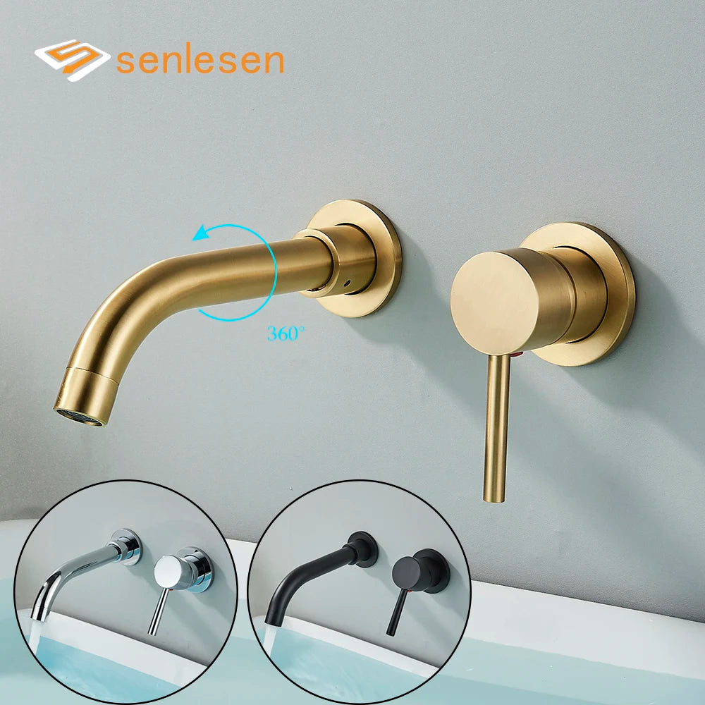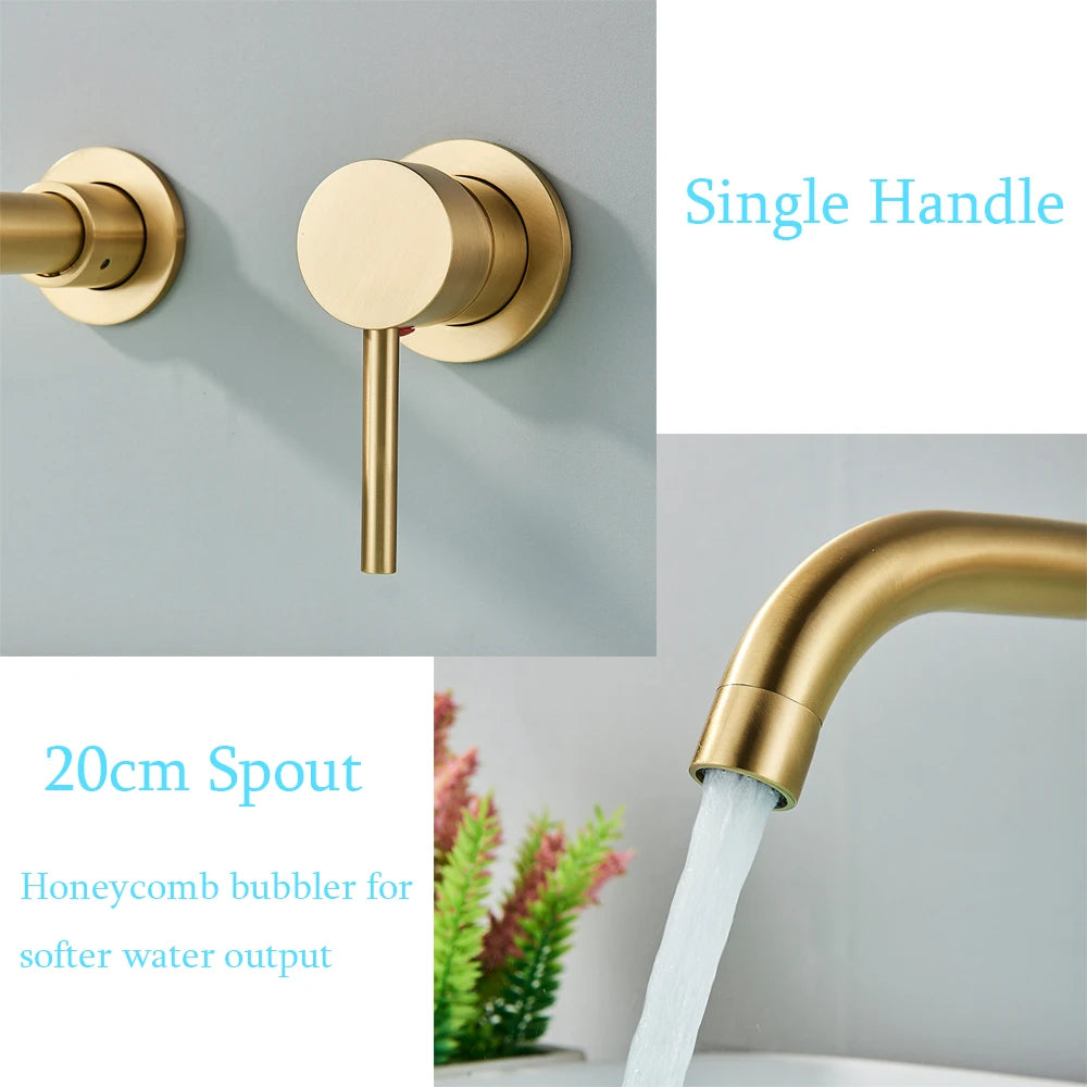 Bathroom Basin Faucet Brushed Golden Concealed Wall Mounted Faucet Tap 360 Rotation Single Handle Hot Cold Water Bath Mixer Tap