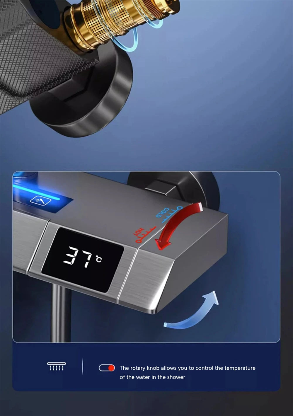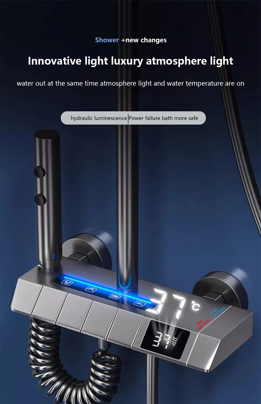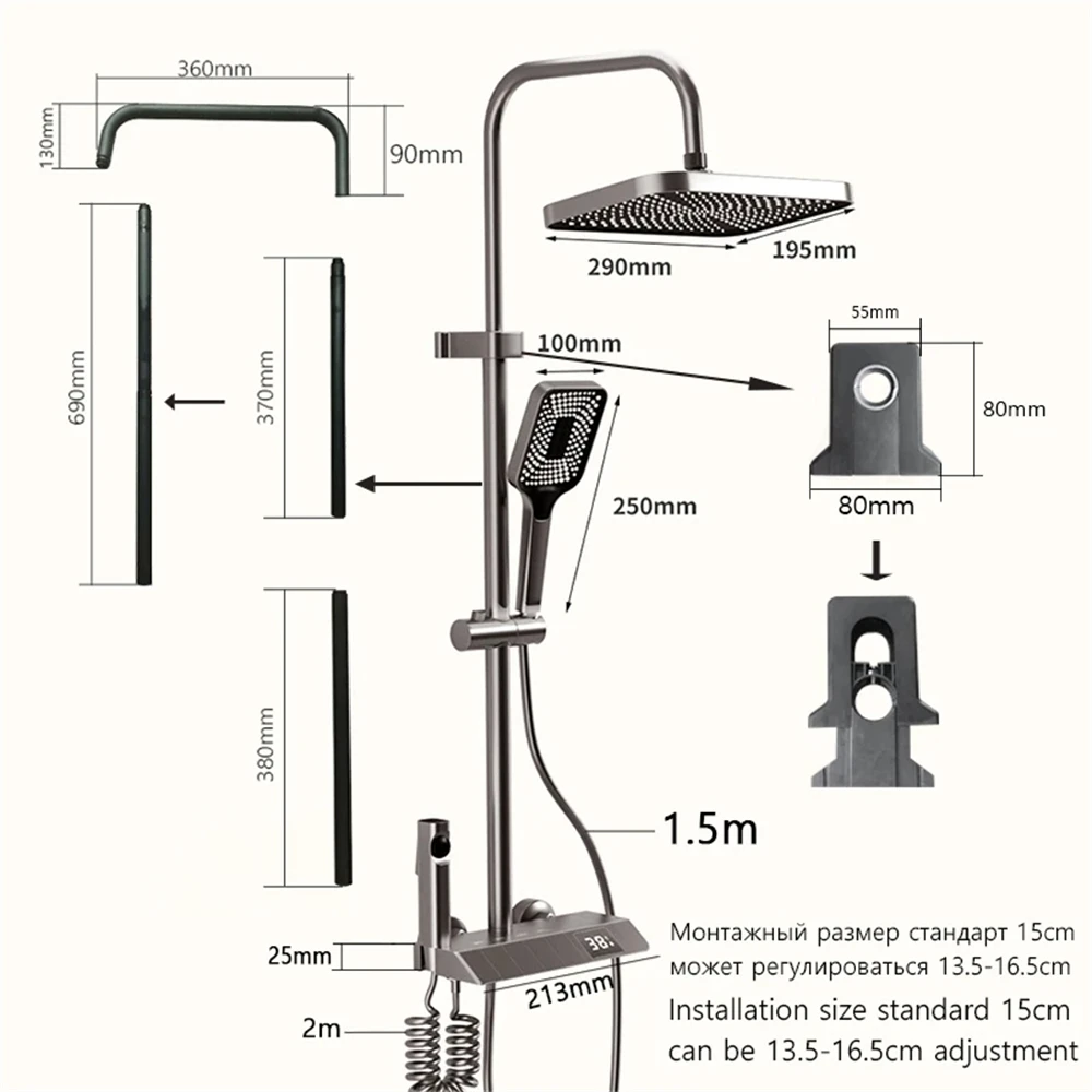 Bathroom shower system with intelligent LED temperature display multifunctional shower suite rain shower faucet complete set