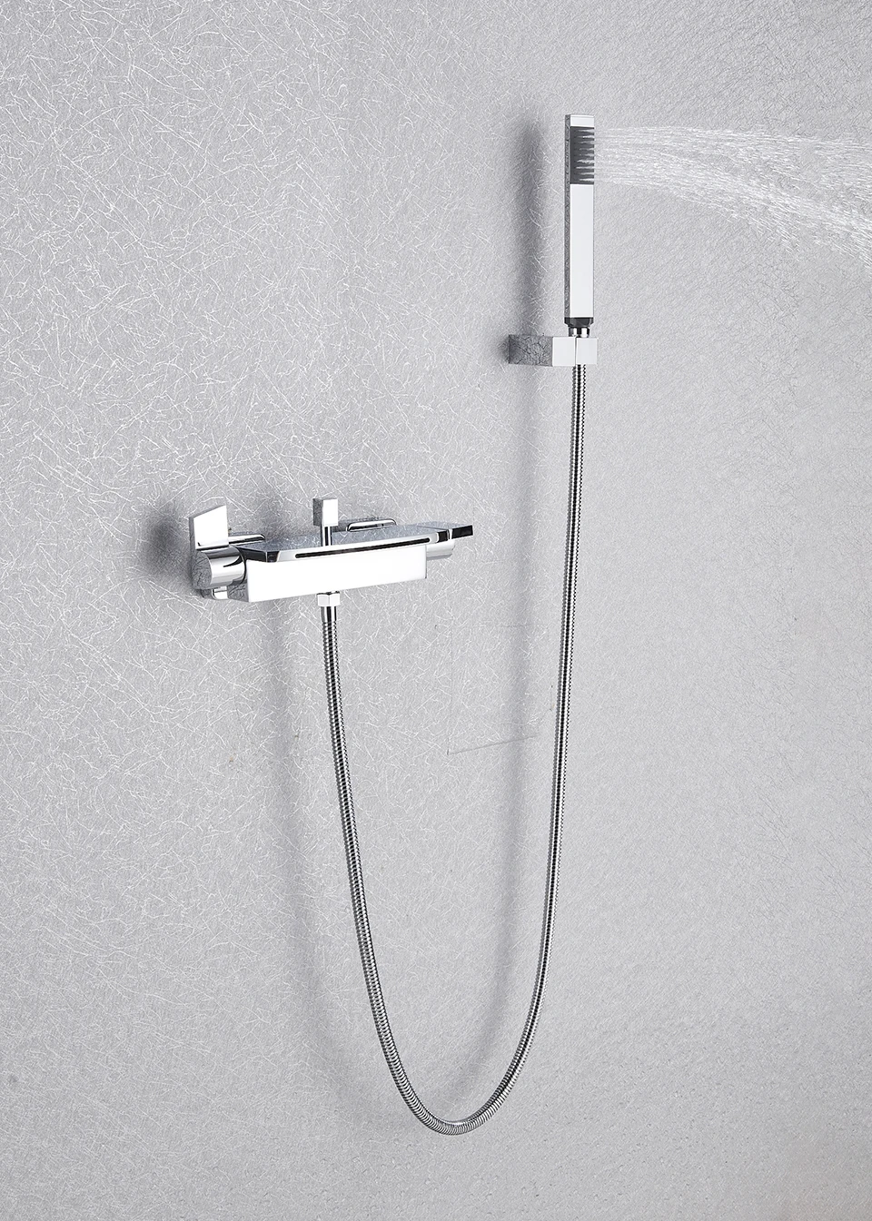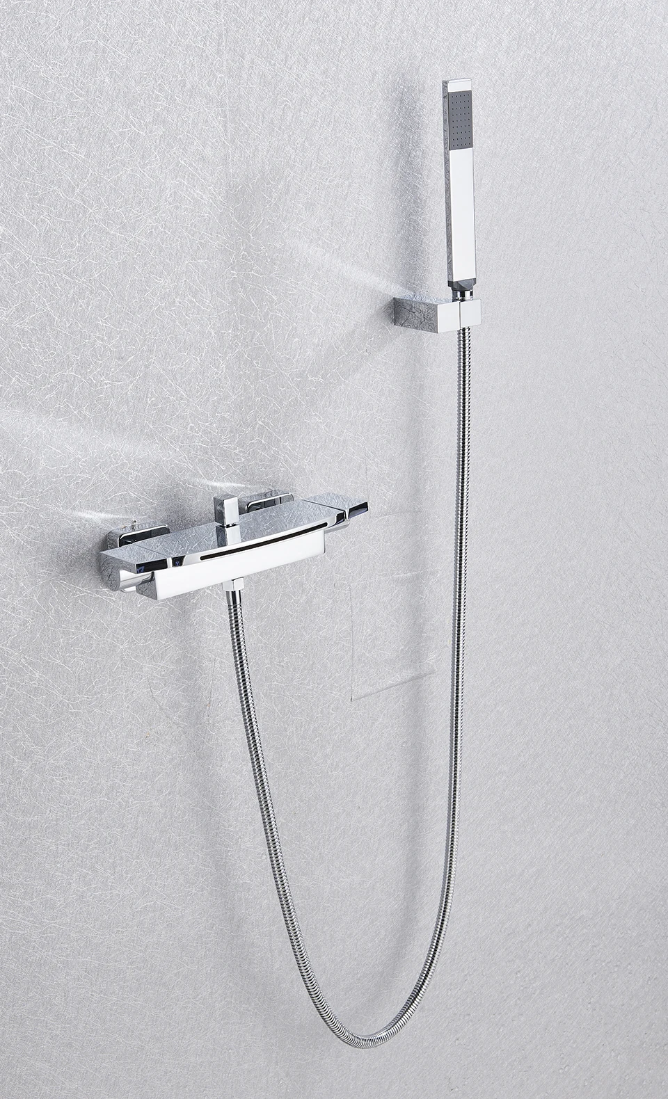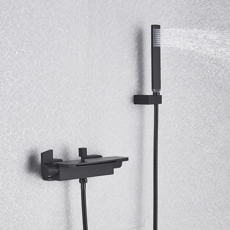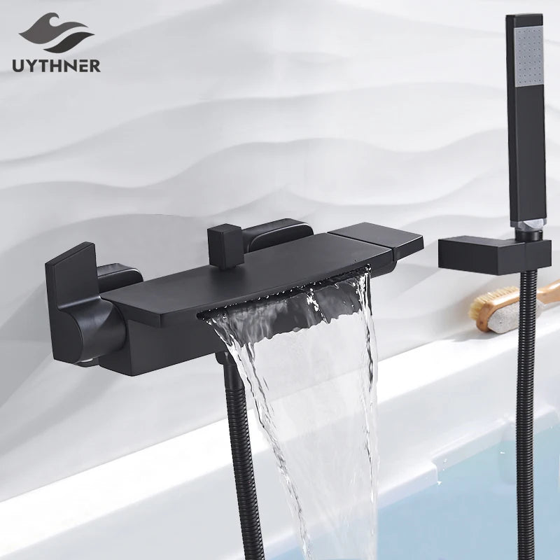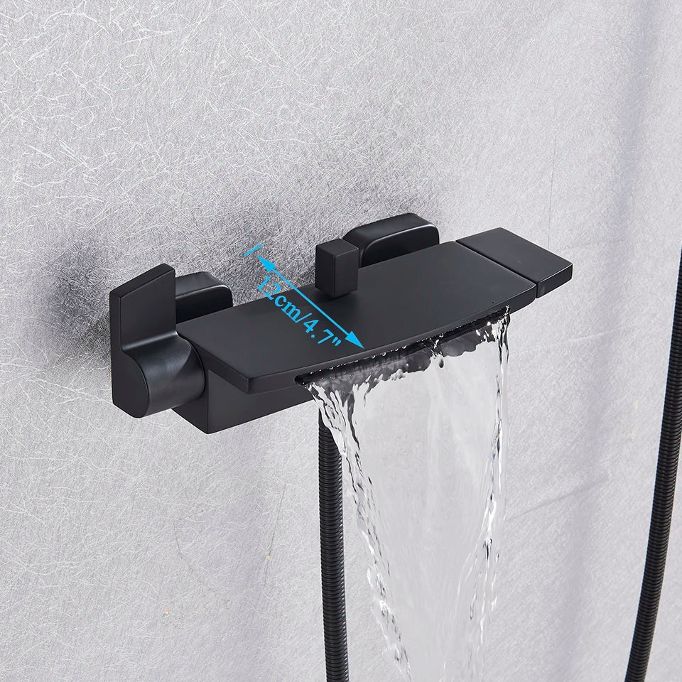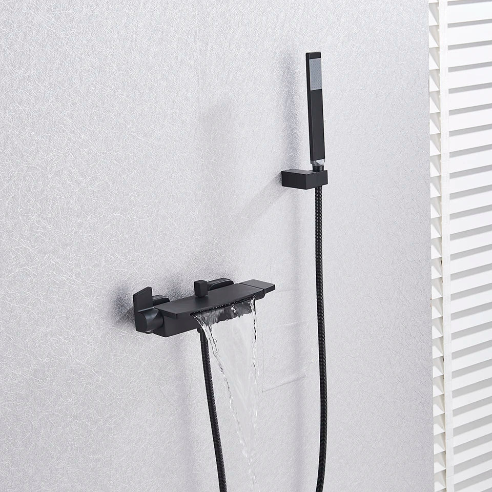 Bathroom Tub Faucet Single Handle Waterfall Spout Mixer Tap with Hand Shower Wall Mounted Bath Faucet Bathtub Faucet Water Mixer