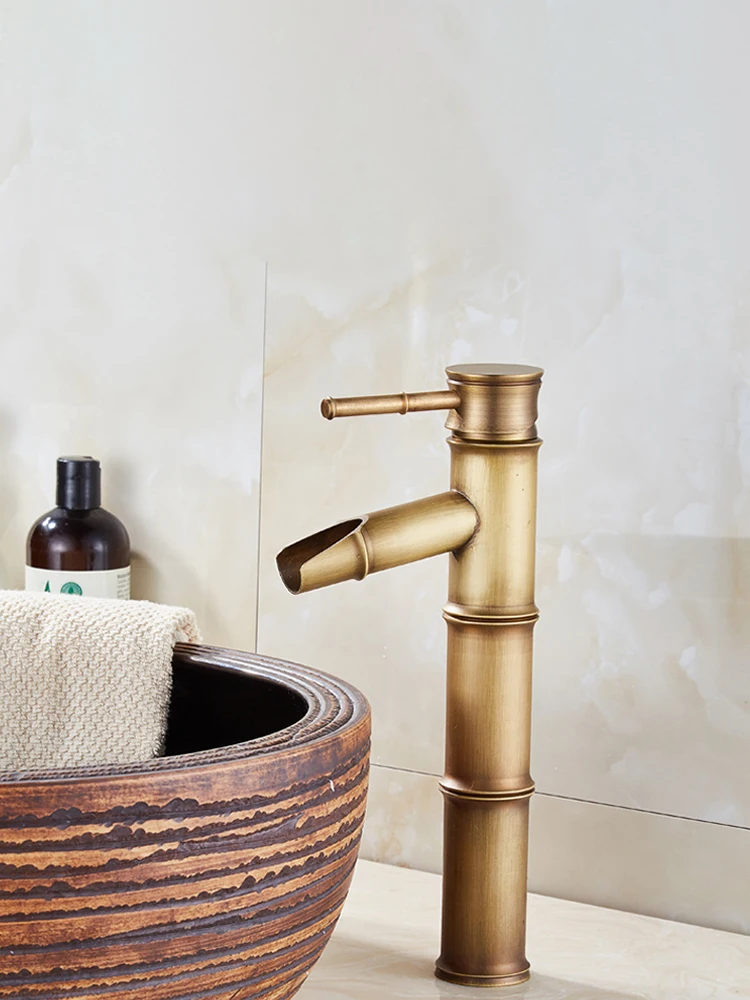 Bathroom Vanity Faucet Single Handle Hole Bathroom Sink Faucet Basin Mixer Tap Antique Brass Supply Hose Tap Hot Cold Water
