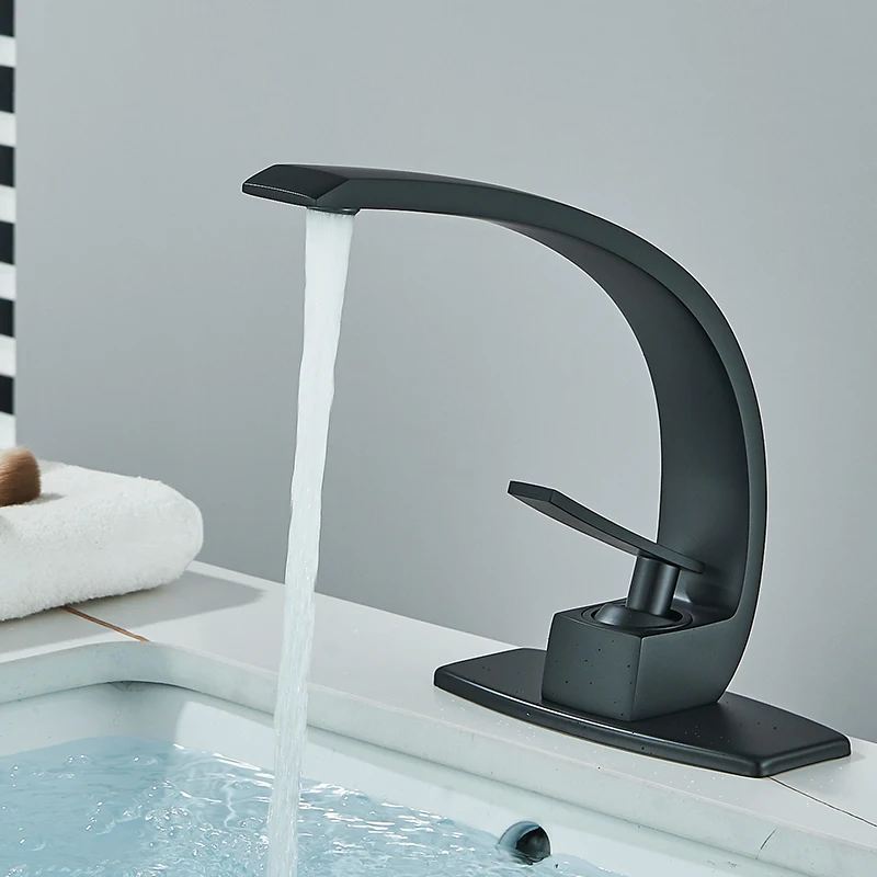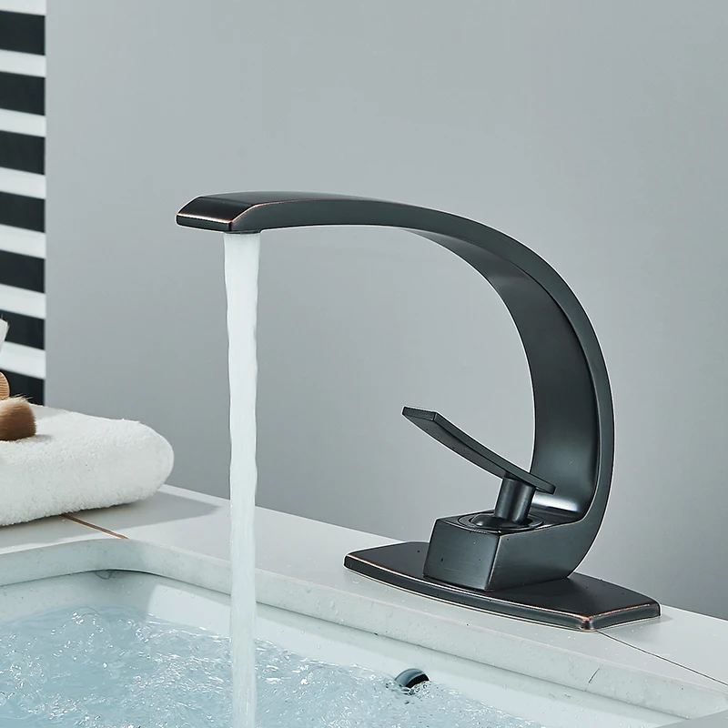 Black Bathroom Basin Faucet Deck Mount Black Chrome Washing Basin Mixer Water Taps Creative Hot Cold Water Crane Mixers