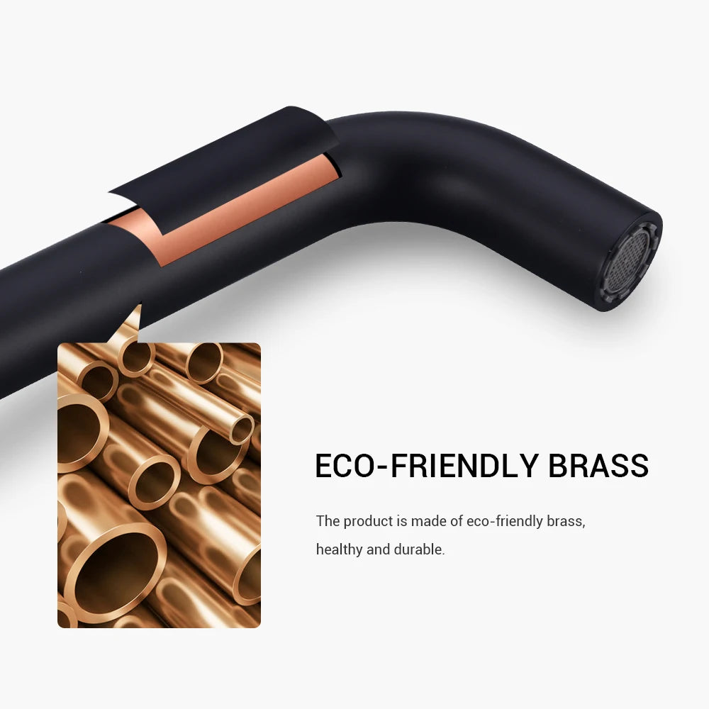 Brass Matte Black Bathroom Sink Faucet Tap Hot Cold Wash Basin Water Swivel Spout Wall Mounted Bath Mixer Brushed Rose Gold