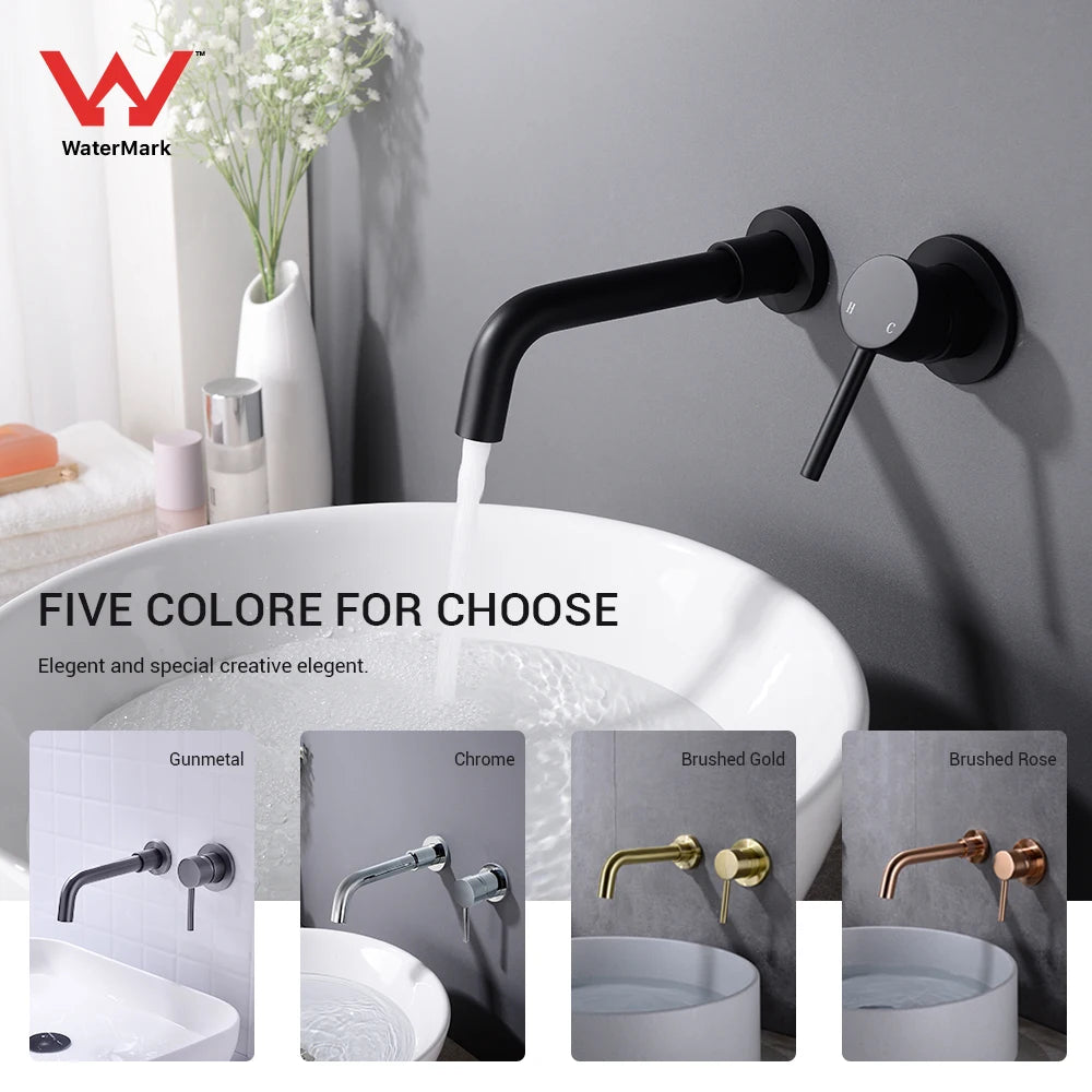 Black Bathroom Sink Faucet Brass Tap Hot Cold Wash Basin Water Swivel Spout Wall Mounted Bath Mixer Brushed Gold Gunmetal