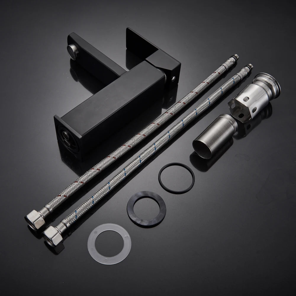 Black Deck Mounted Bathroom Basin Mixer Tap Square Single Handle Basin Vessel Sink Faucet Hot Cold Water Faucet for Basin