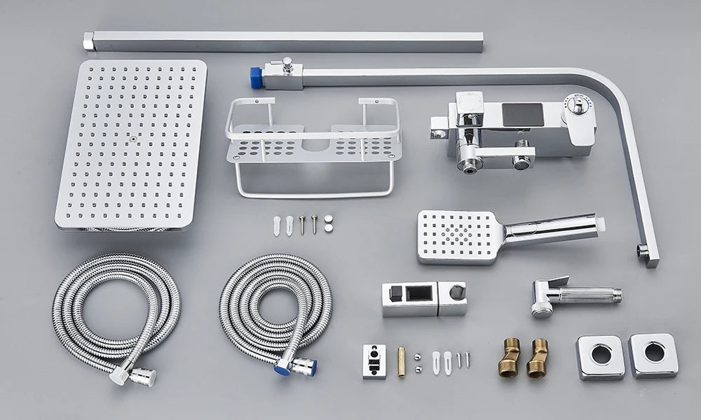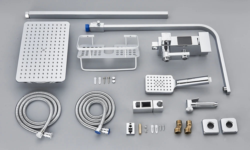 Black Digital Display Thermostatic Shower Faucet Bathroom Thermostatic 4 ways Rainfall Shower Mixer Tap,Shelf and Bidet Faucets