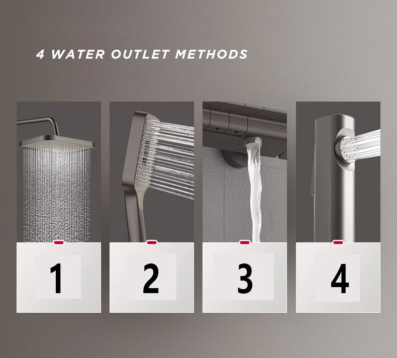 Black Digital Shower Set Bathroom Rainfall Brass Wall Mounted 4Way Shower Faucet Bathtub Thermostat Rain Mixer Tap Shower System
