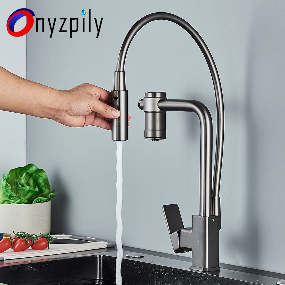 Black Filter Water Kitchen Faucet Black Pull Down Sprayer Brass Purification Feature Tap 360 Swivel Purification Mixer Taps