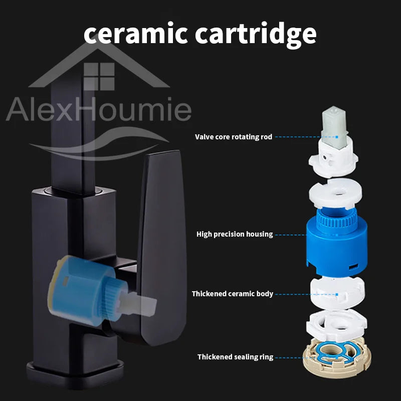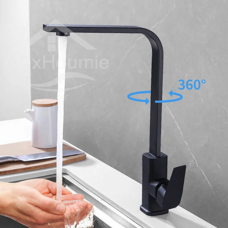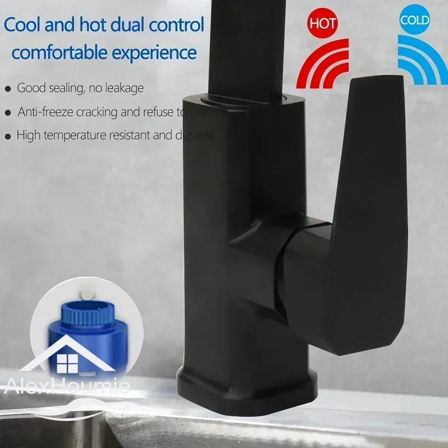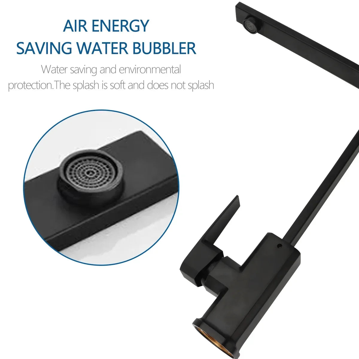 Black Kitchen Faucet Hot And Cold Water Mixer 360 Degree Rotating Vessel Sink Tap Wall Mounted for Kitchen