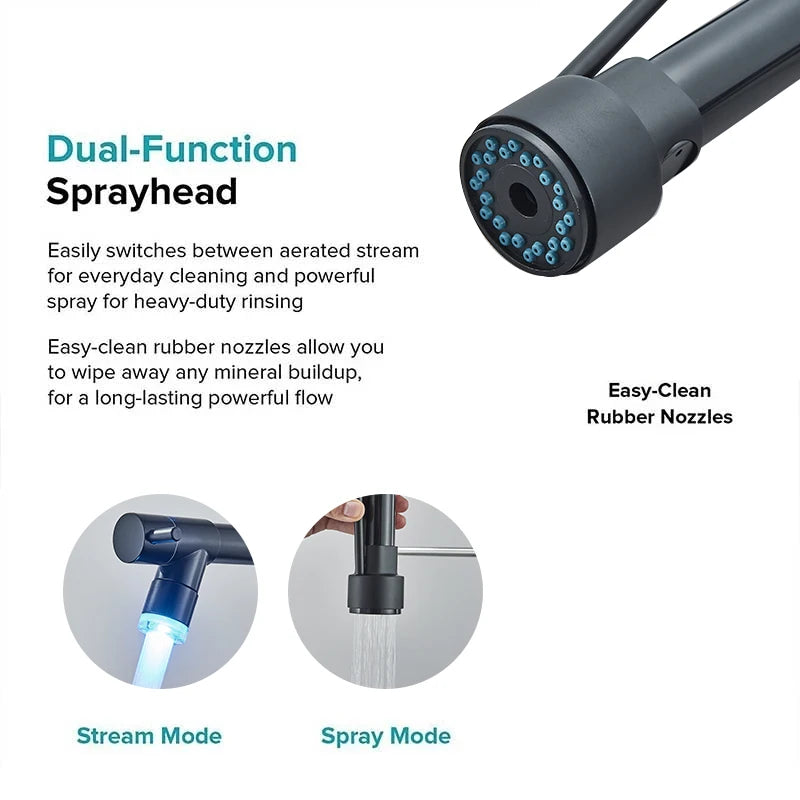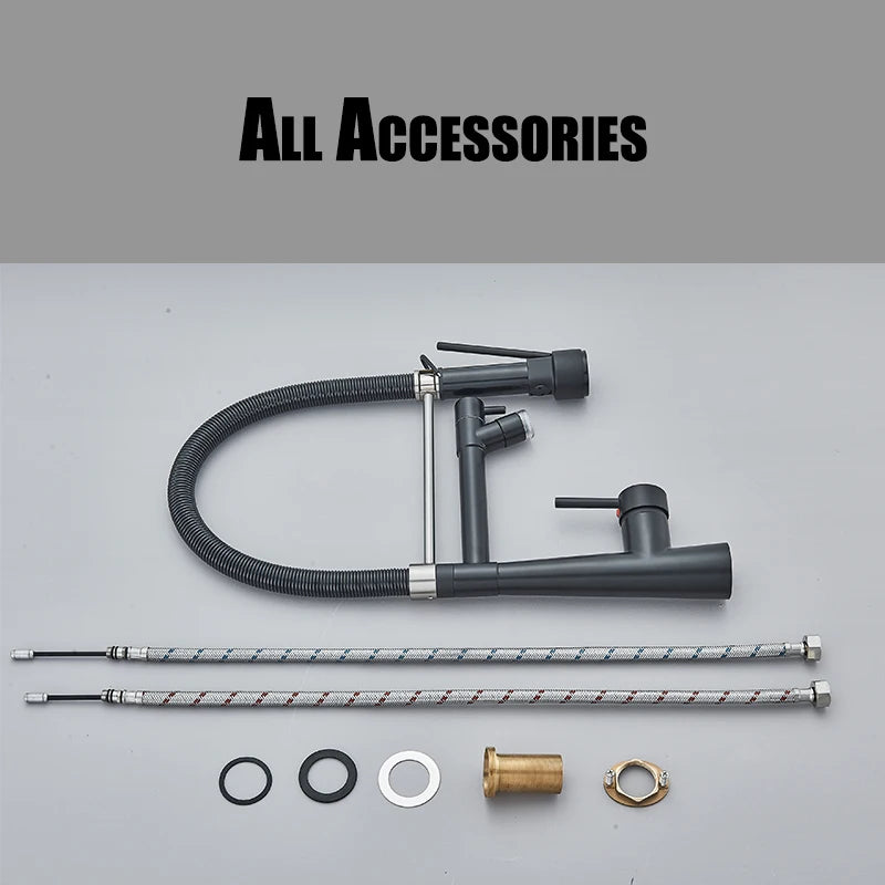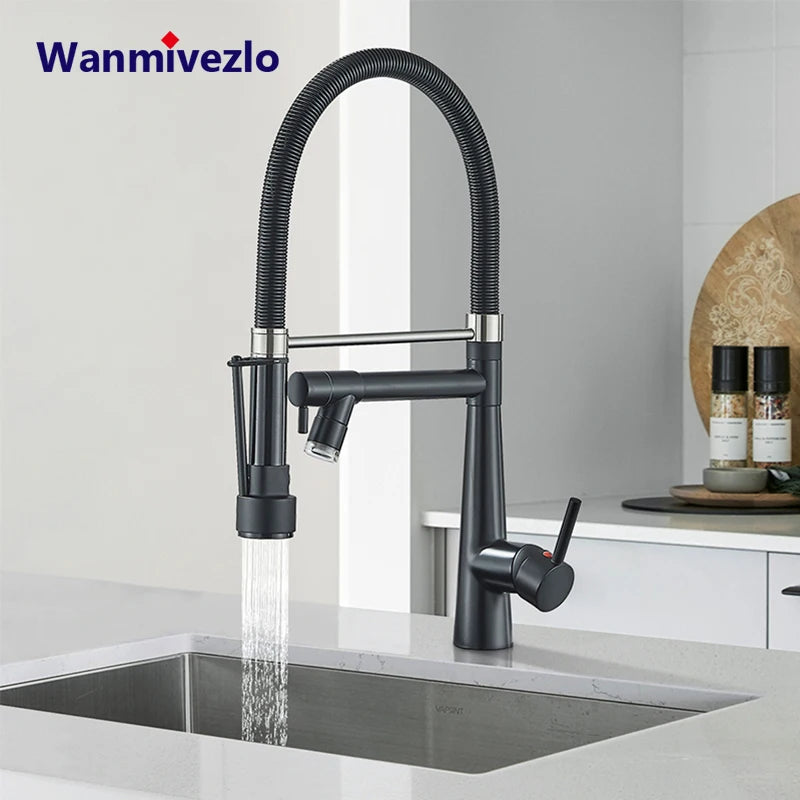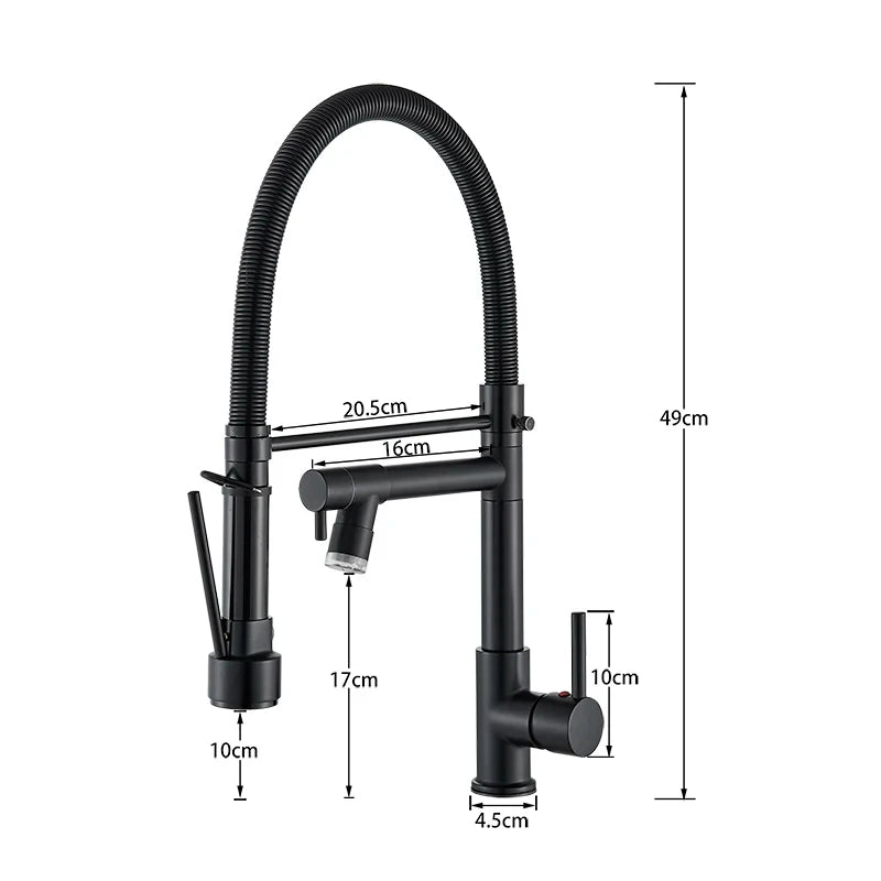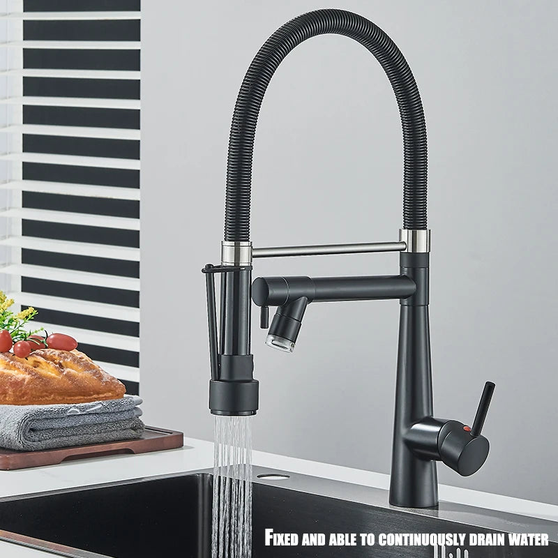 Black Kitchen Faucet LED Light Pull Down Spring Sink Faucets Dual Swivel Spout Kitchen Torneira Hot Mixer Tap