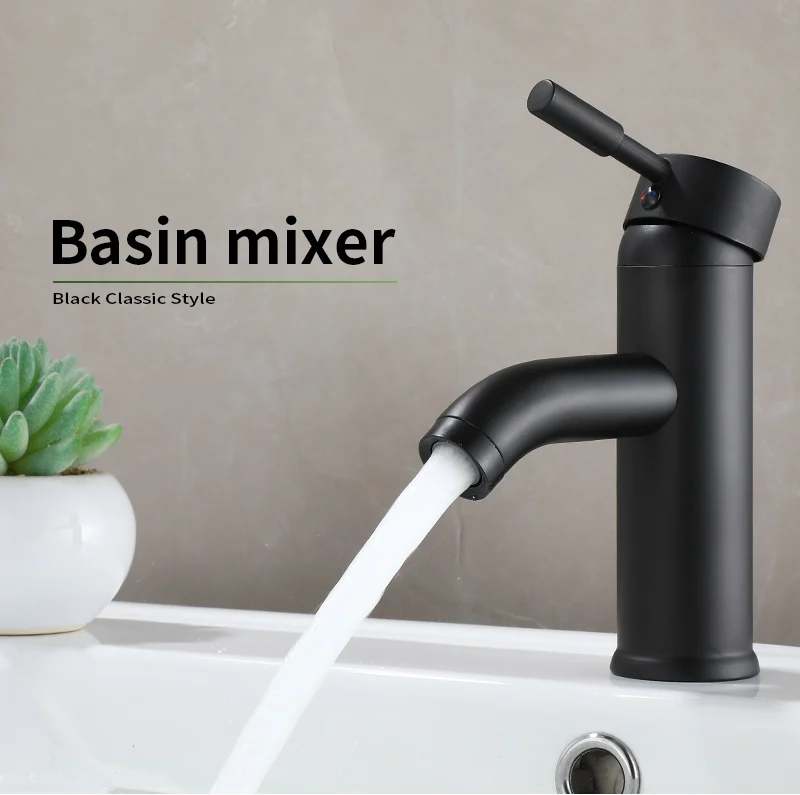 Black Minimalist style Bathroom Faucet Hot Cold Water Sink Mixer Tap Stainless Steel Basin Faucets