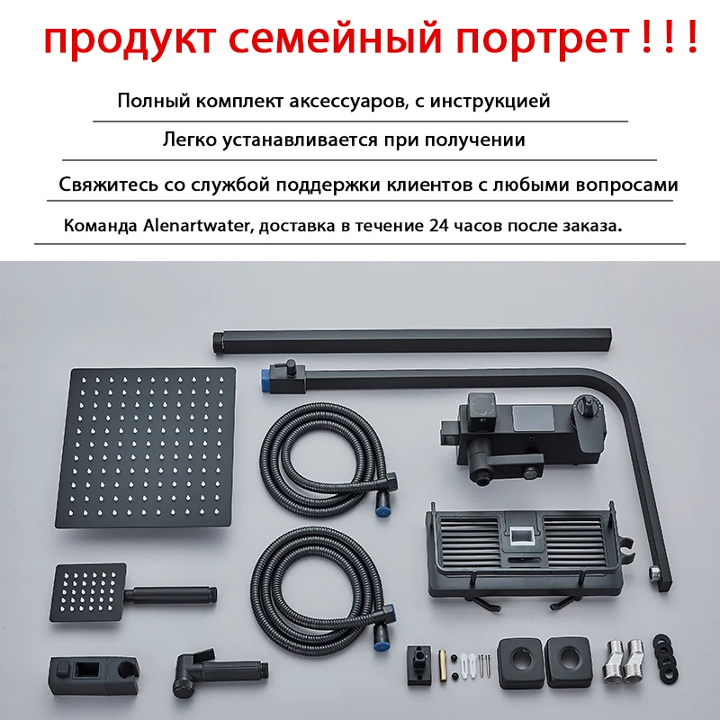 Black Smart Thermostatic Shower Faucet Set Bathroom Intelligent Rainfall Digital Mixer Tap With Rack and Bidet Bath System