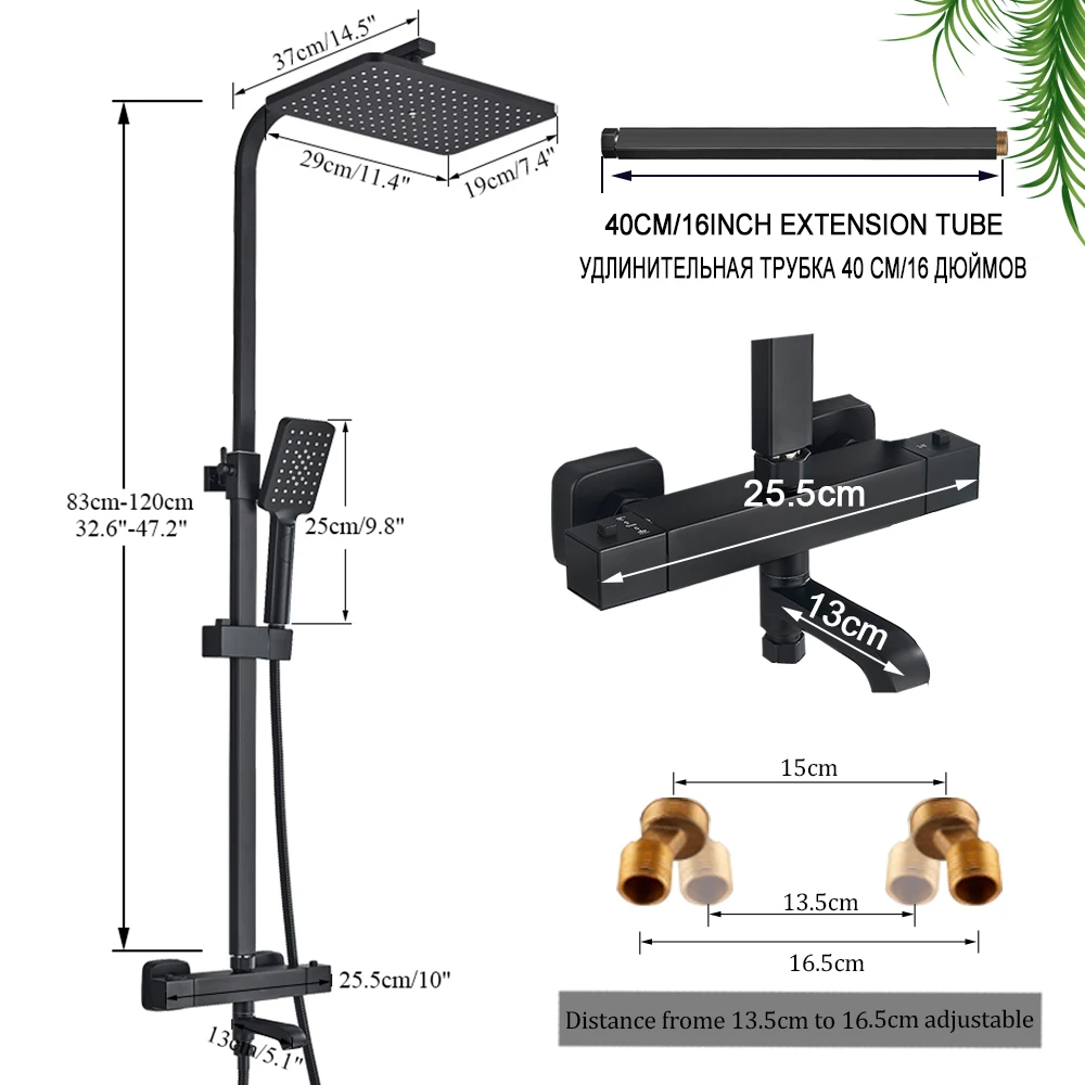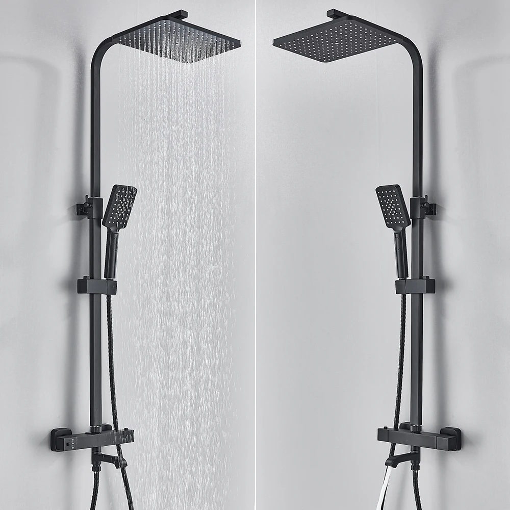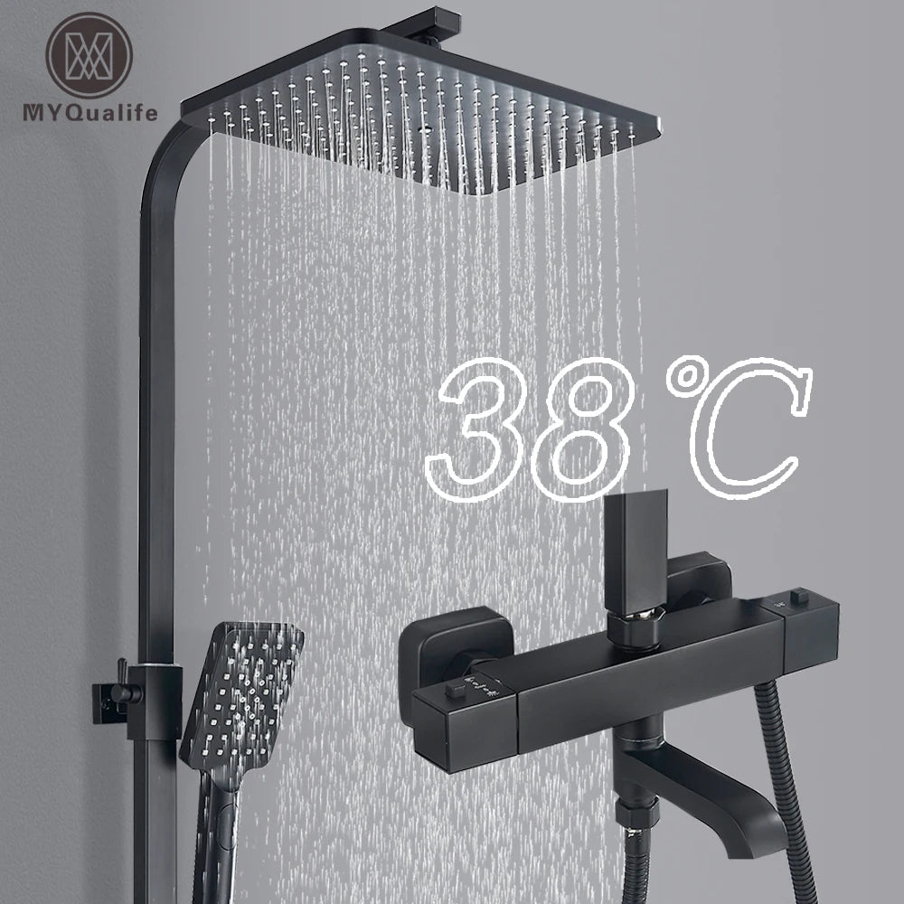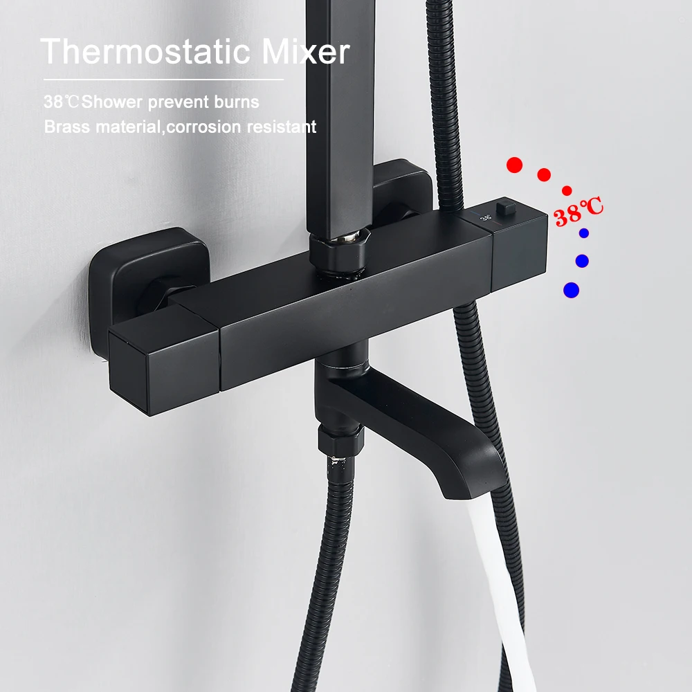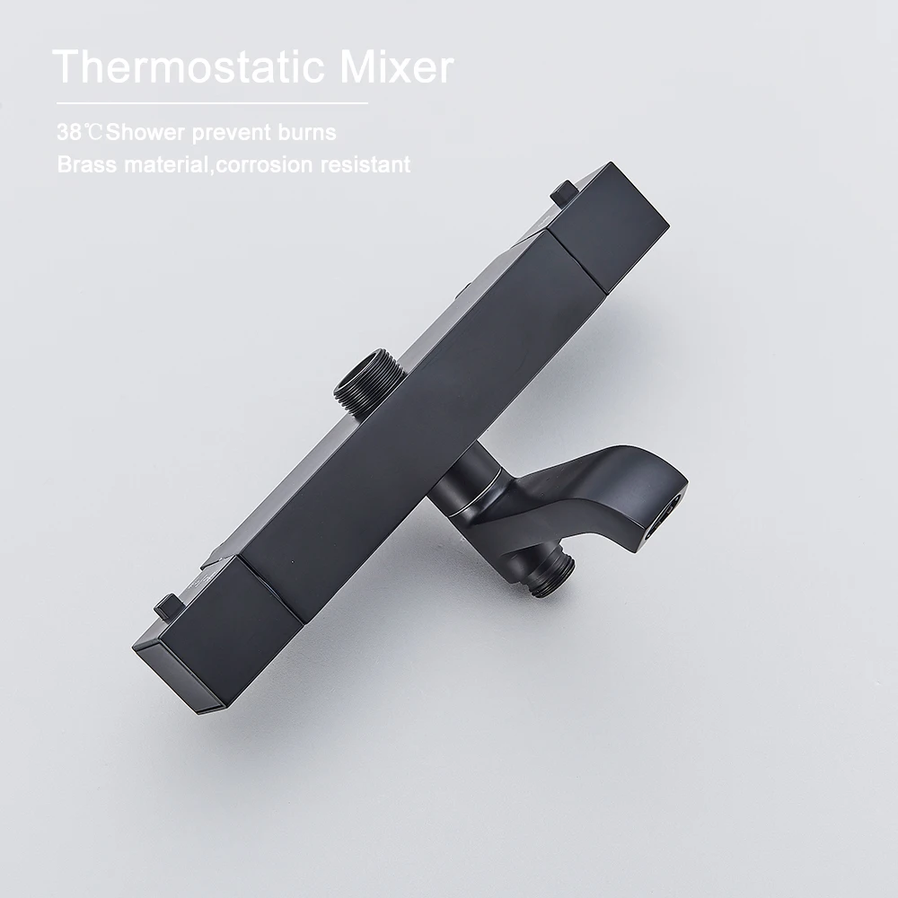 Black Thermostatic Shower Faucet Set 38℃ Rainfall Shower Mixer Crane Multifunctional Bathroom Faucet Bathtub Tap With Shelf