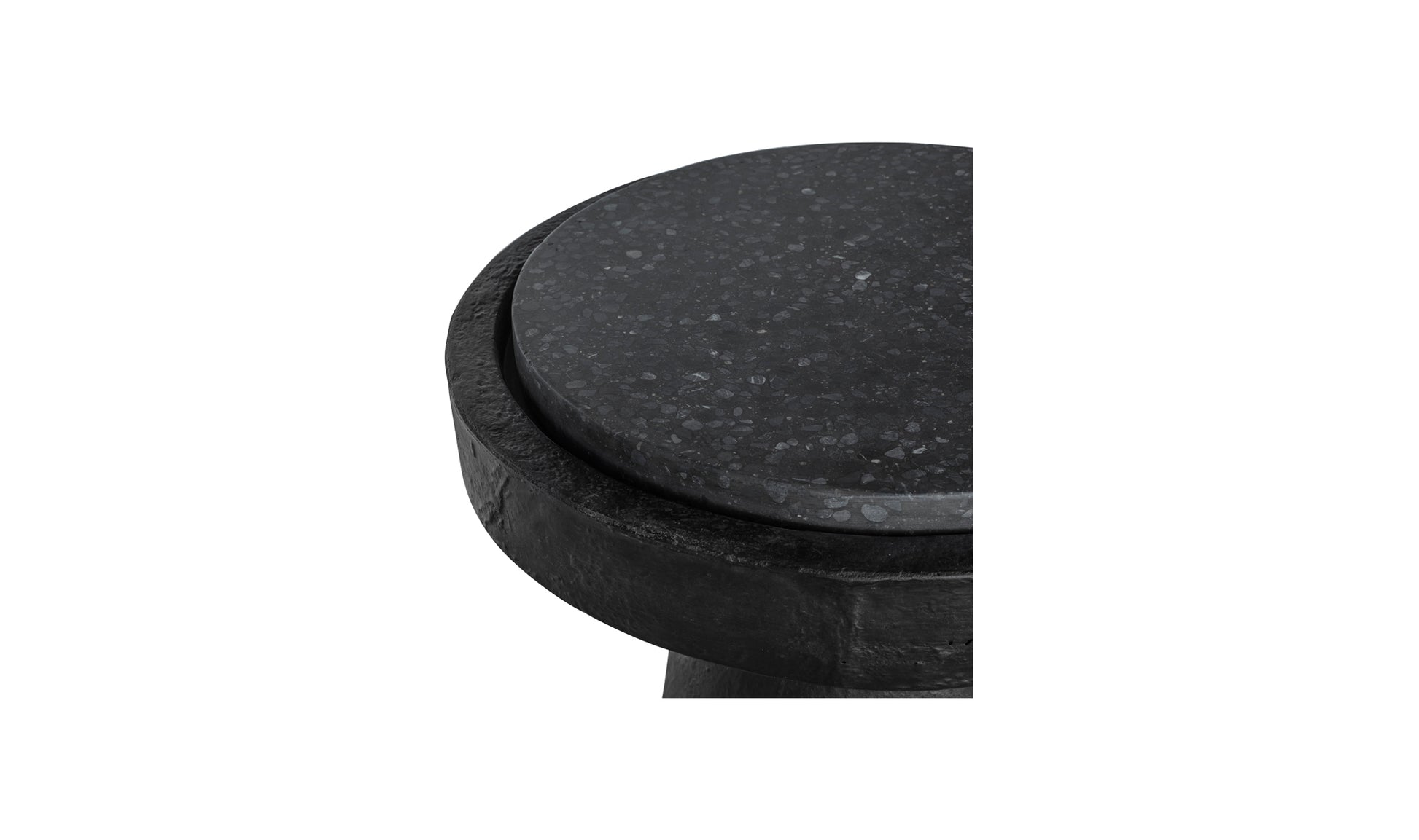 Raw yet refined. The Book accent table is all about the materials, a display of cement and terrazzo combined with a dark and moody color scheme. Its sculpted cement base has a hand-crafted rustic feel, with a silhouette that calls back to antiquity. An optimal plinth for your drinks, trinkets or (naturally) books, the tabletop is made from gorgeously flecked black terrazzo. Perfectly imperfect, the Book accent table will add a bit of tactile flair to any living space.