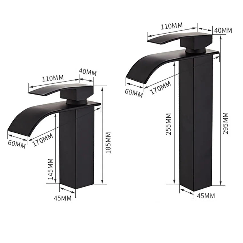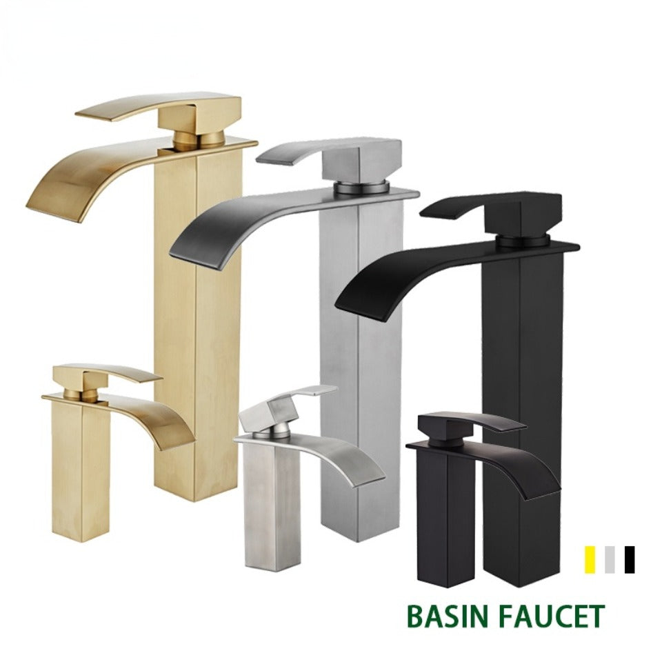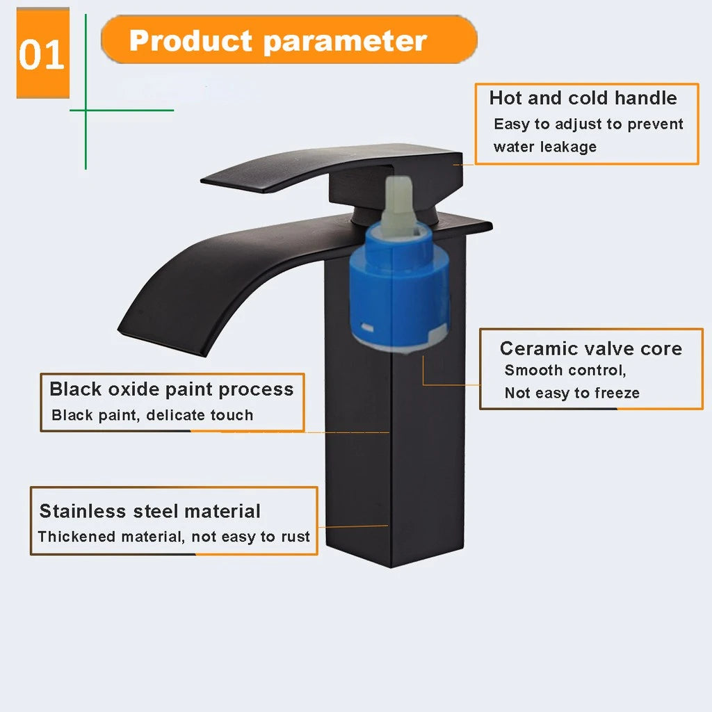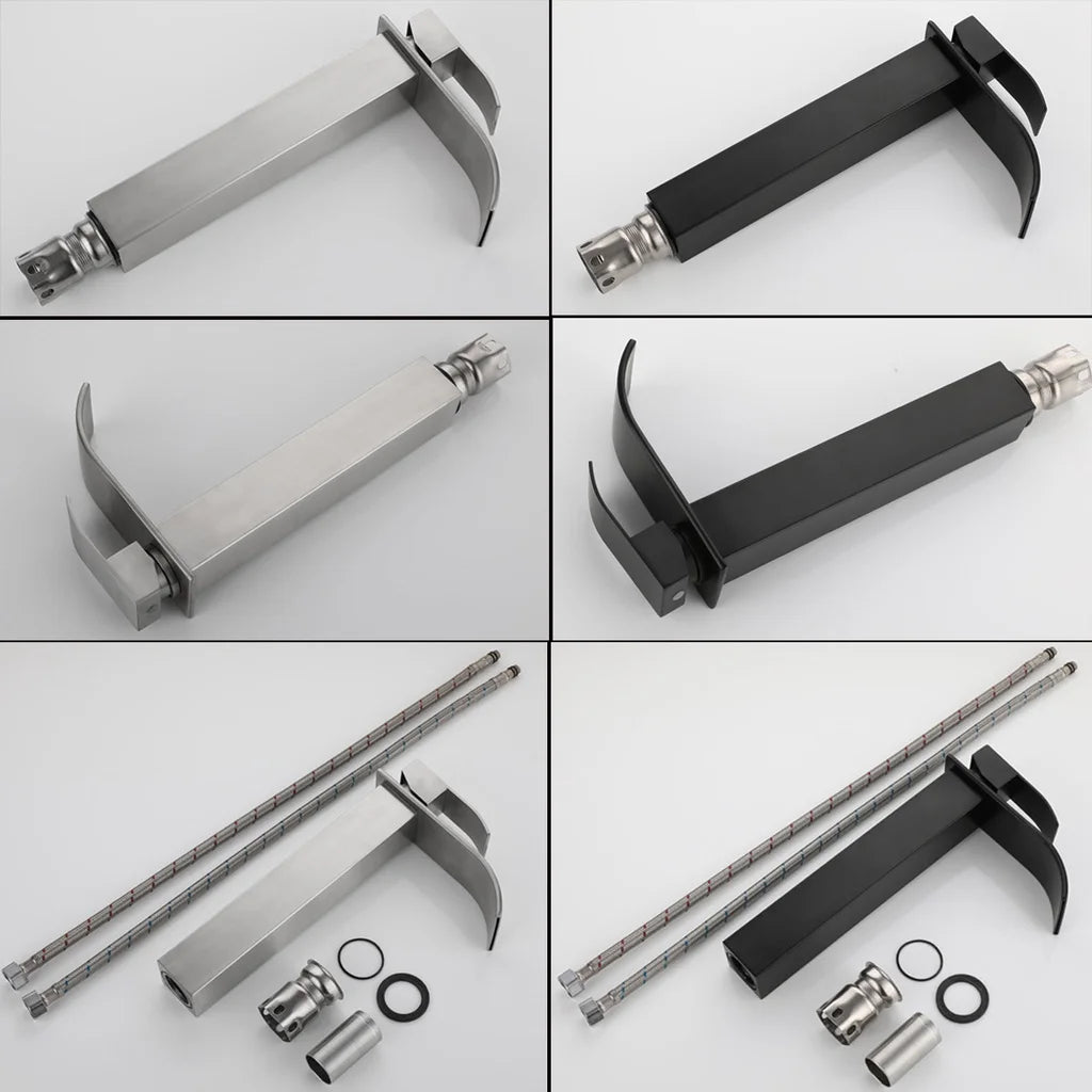 black Square Paint&Brushed Deck Mount Waterfall Bathroom Faucet Sink Faucet Set Washbasin Faucet Bathroom Basin Faucets Hot Cold Mixer Tap Single Hole Kitchen Items Toilet Deck Mounted Basin Tap