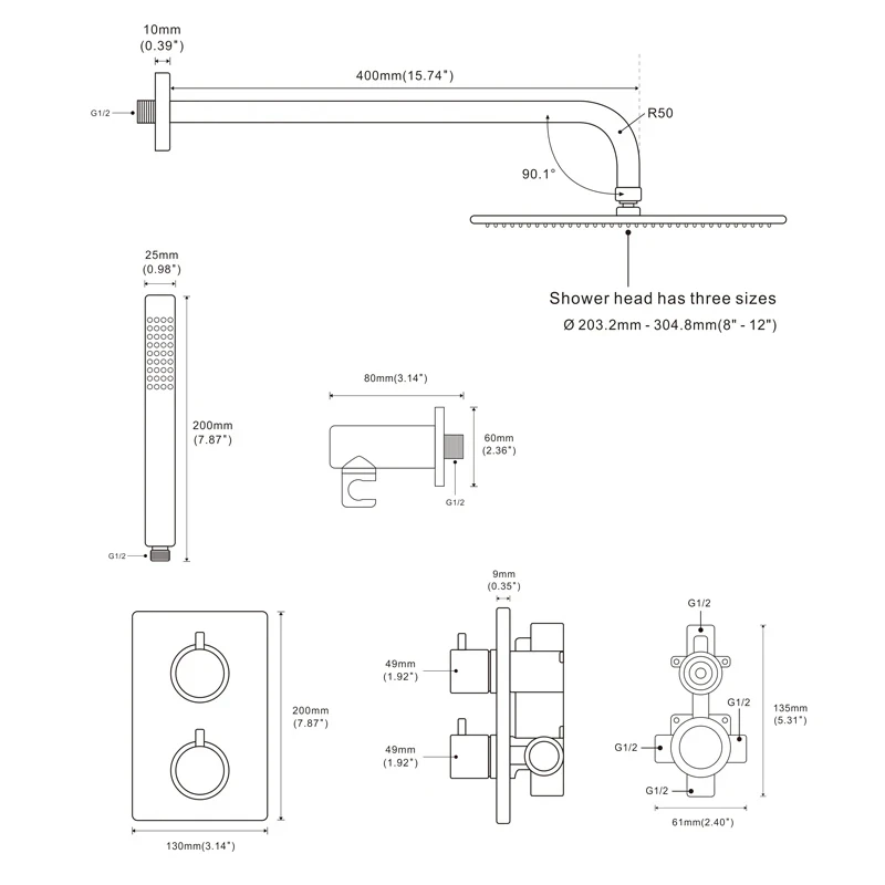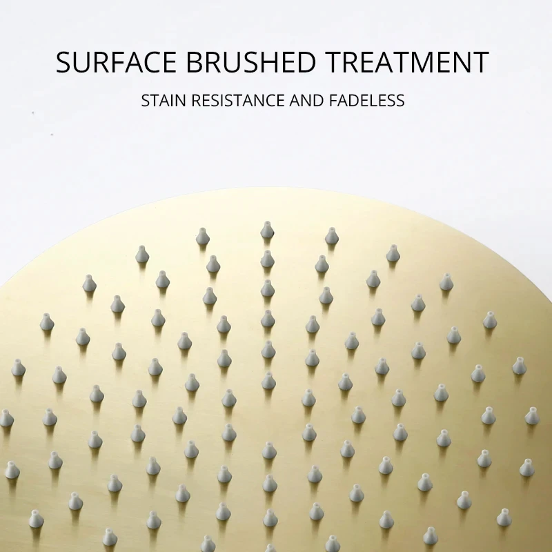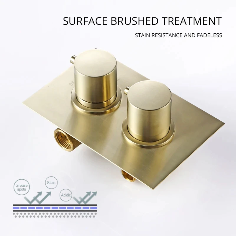 Brushed Gold Thermostatic Mixer Diverter Set Bath Bathroom Shower Head Rianfall Luxury Combo Faucet Wall Mount Arm