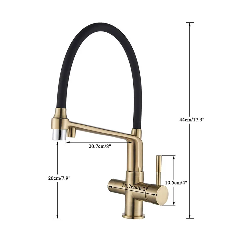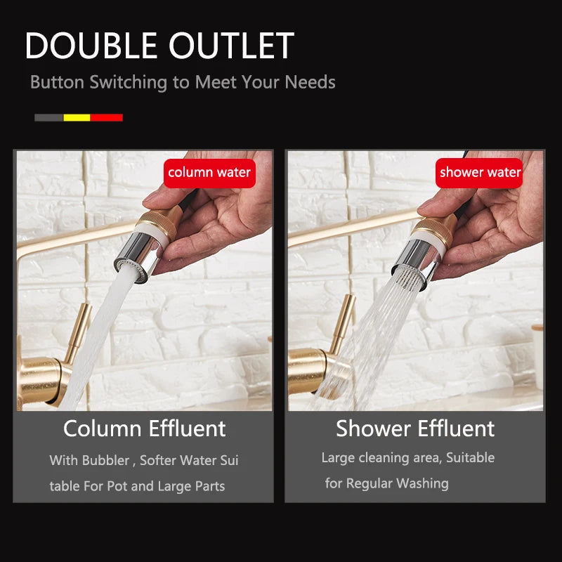 Brushed Golden Kitchen Sink Faucet Pure Water Filter Mixer Crane Dual Handle Pull Down Purification Kitchen Hot Cold Water Tap