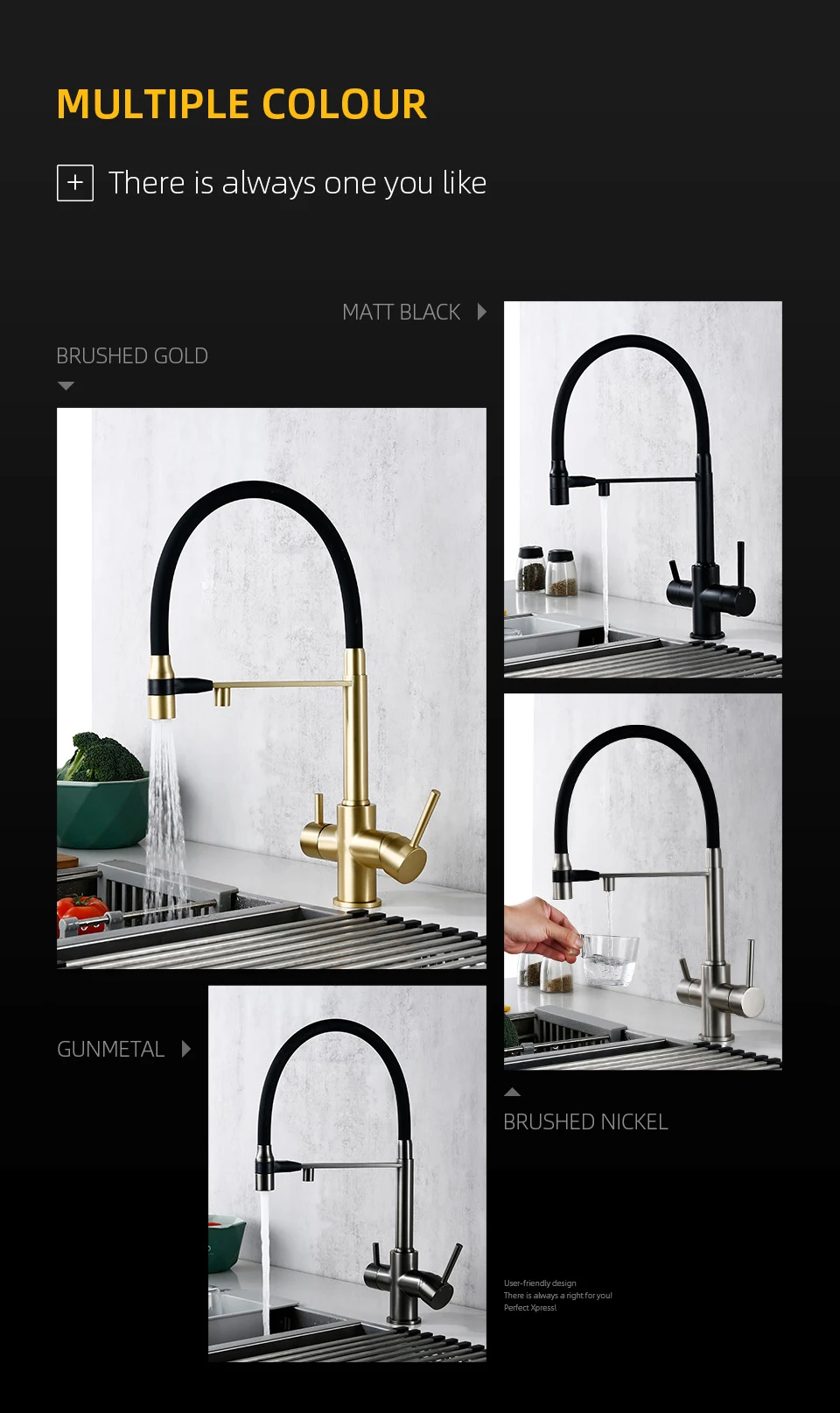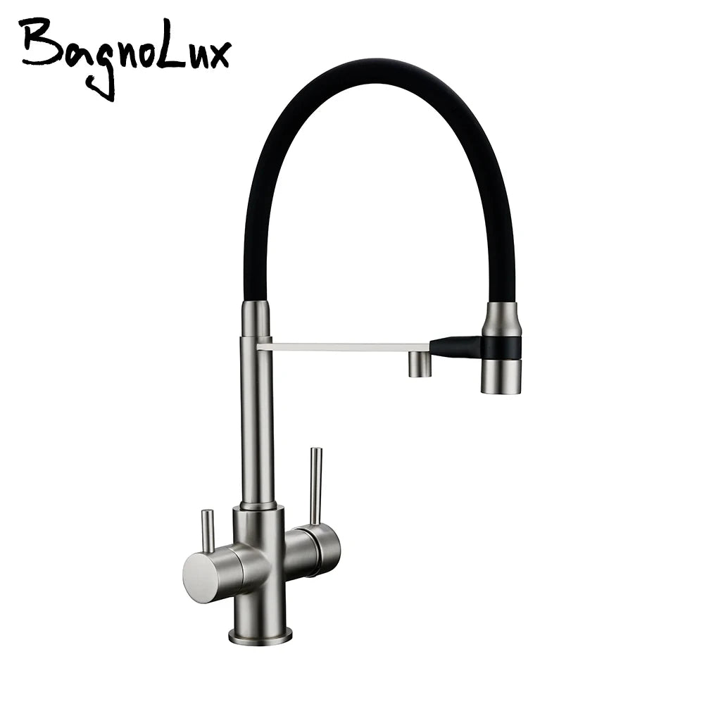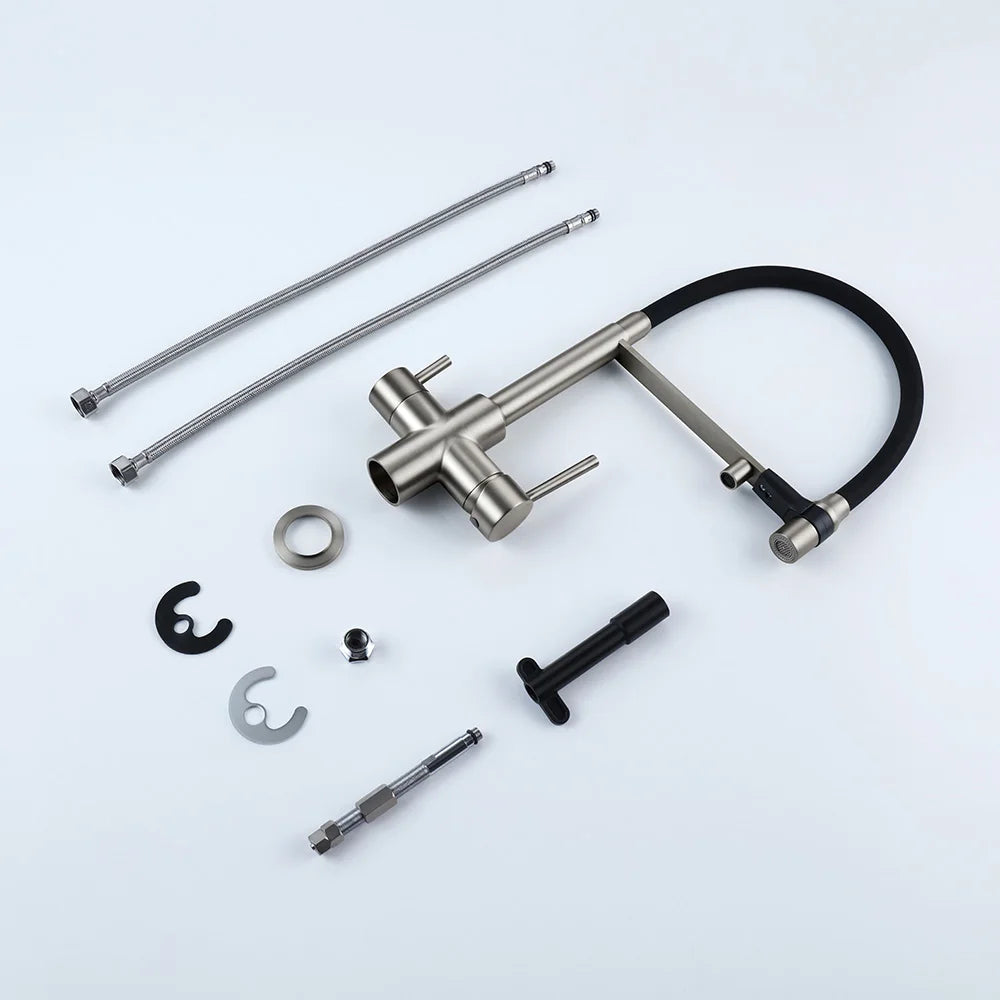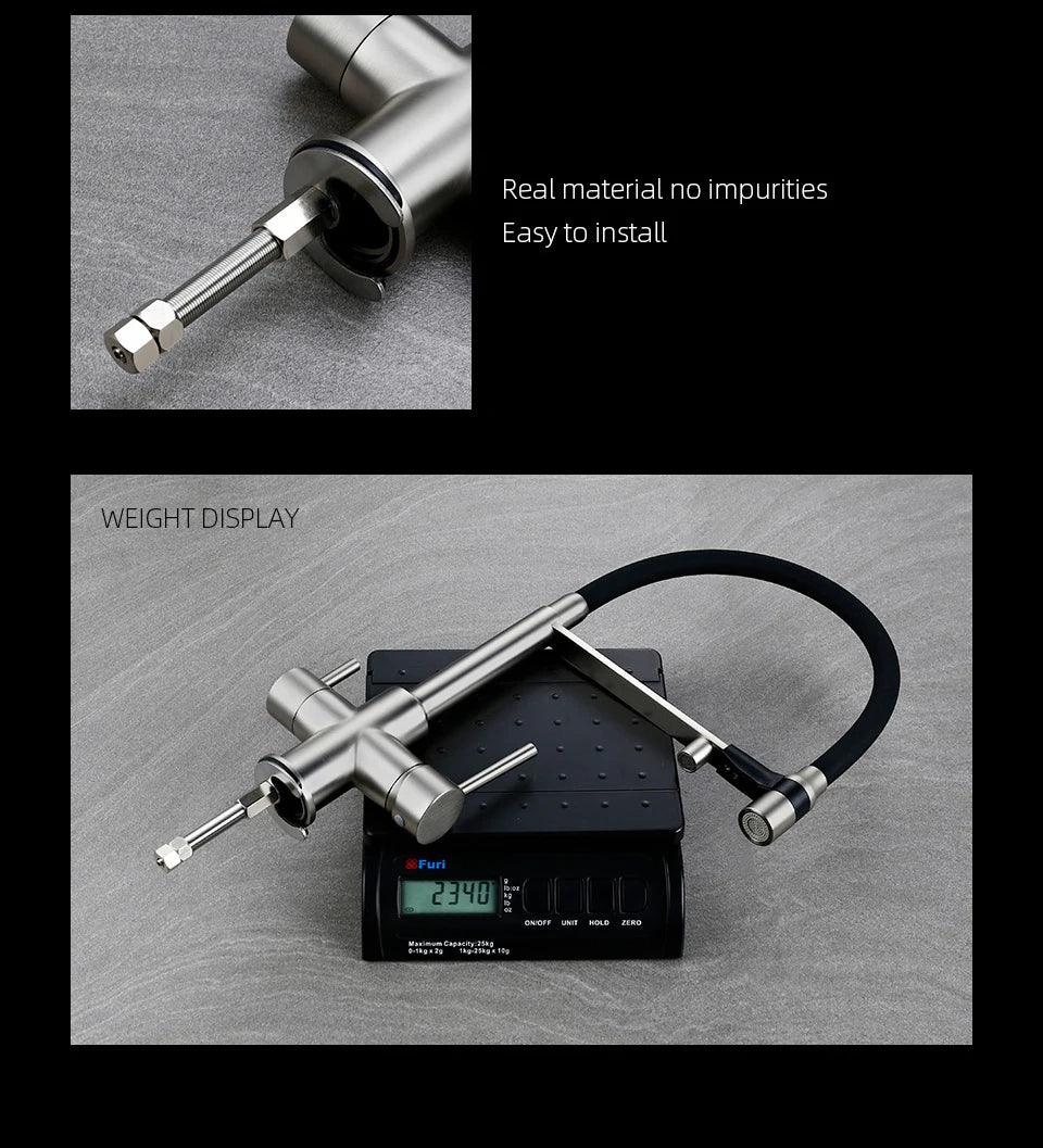Brushed Nickel Kitchen Faucet Pull Out Double Handle Kitchen Tap Matte Chrome Kitchen Mixer Brass Single Hole 3 Ways Sink Tap
