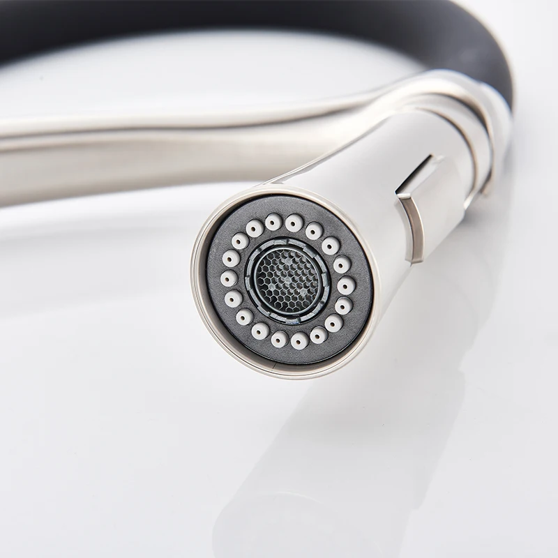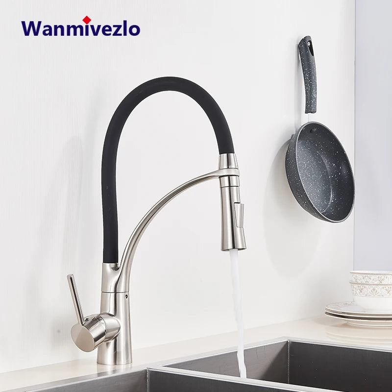 Brushed Nickel Rubber Kitchen Faucet Mixer Tap Rotation Pull Down Stream Sprayer Taps Hot Cold Water Tap One Handle Kitchen Tap
