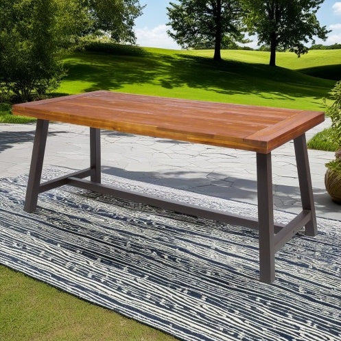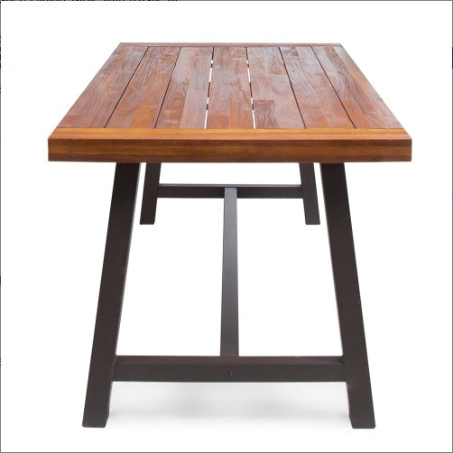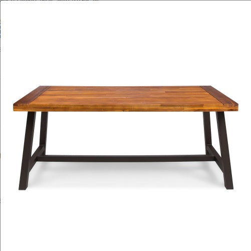 Carlie Outdoor Sandblast Finished Dining Table With Rustic Metal Finished Iron Legs