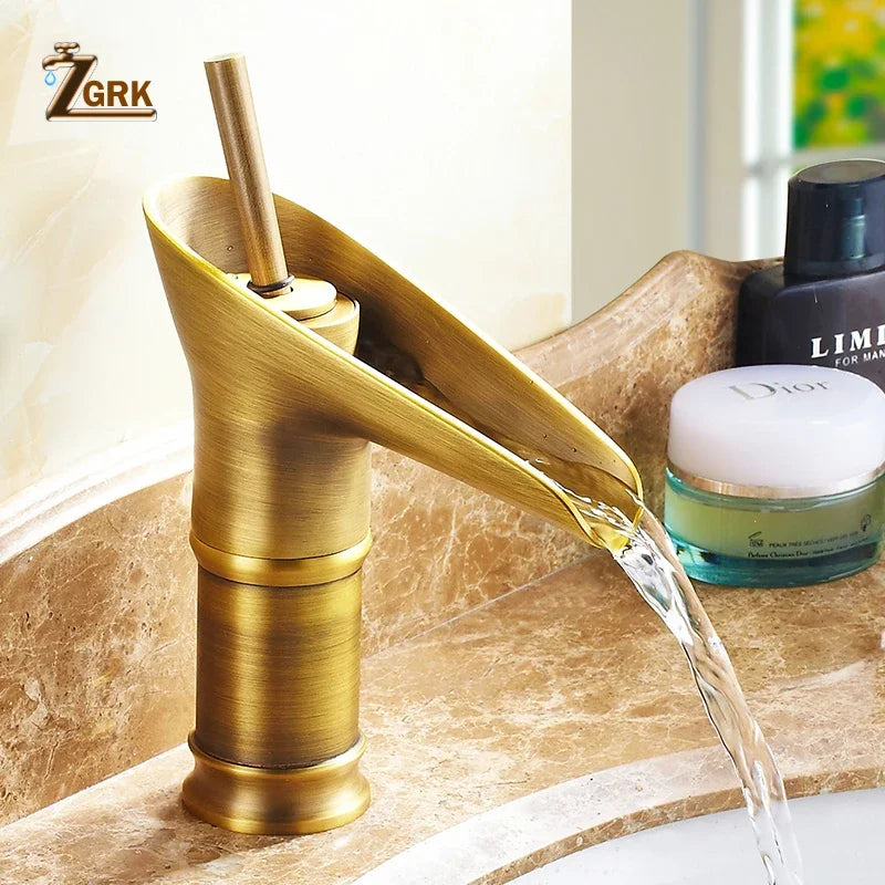 Classic Basin Faucet Antique Style Waterfall Bathroom Faucet Hot and Cold Faucet Bronze Single Hole Goblet Type Water Tap
