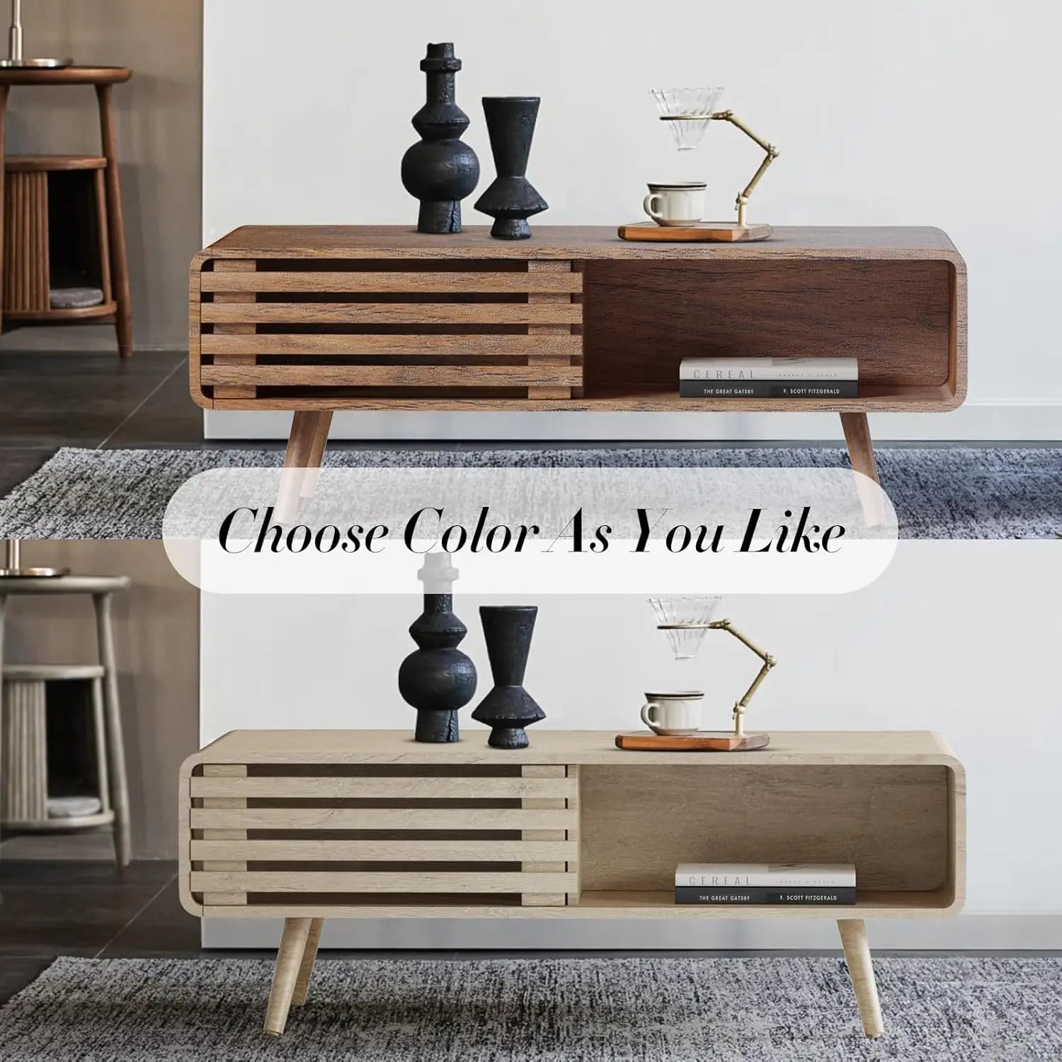 【Waterproof Surface and Delicate Texture】The mid century modern coffee table is designed with a waterproof-treated surface, making it durable and easy to clean. The texture design enhances the wooden table's texture, giving it a distinctive visual effect