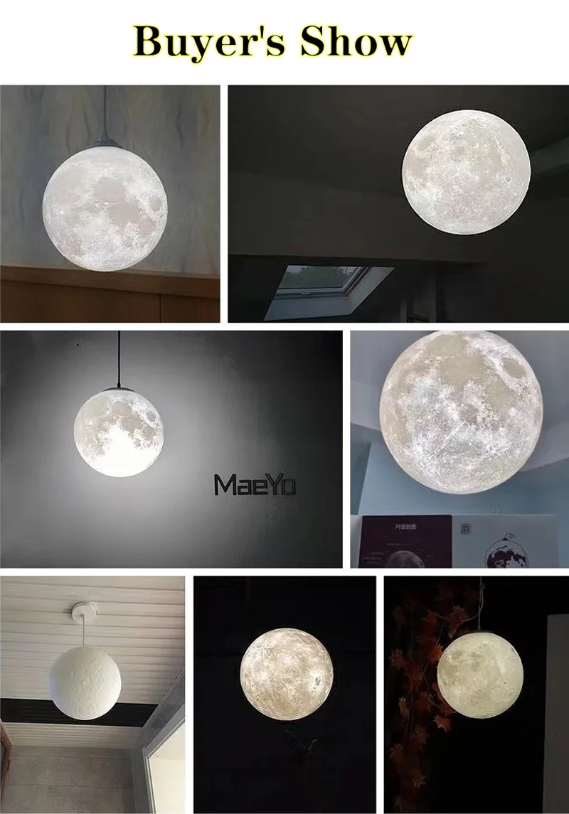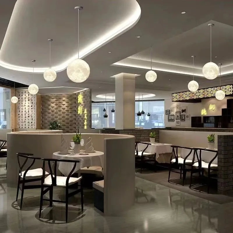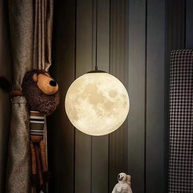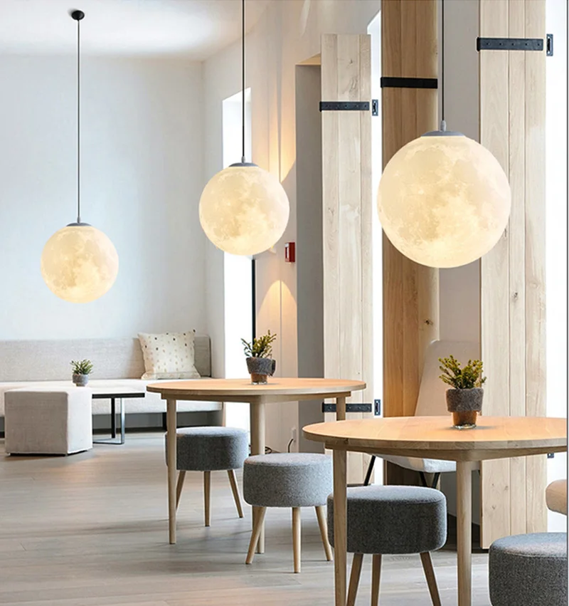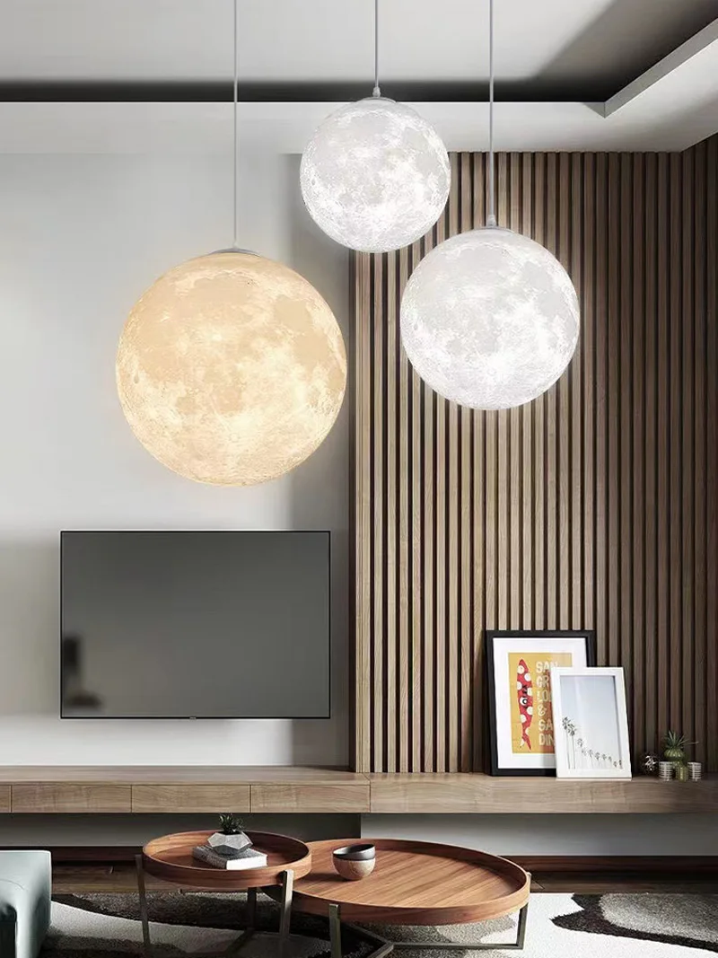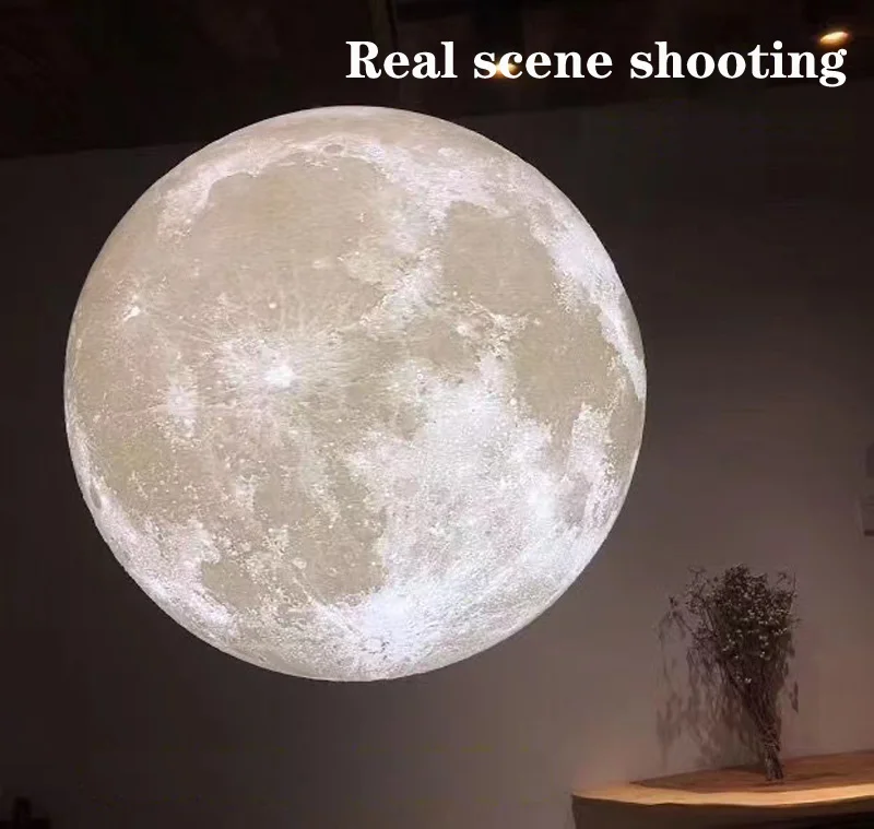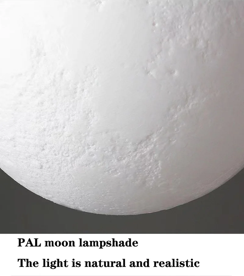 Creative 3D printed moon chandelier 15W 3 Color change light simple bedroom children's room restaurant bar commercial ball lamp