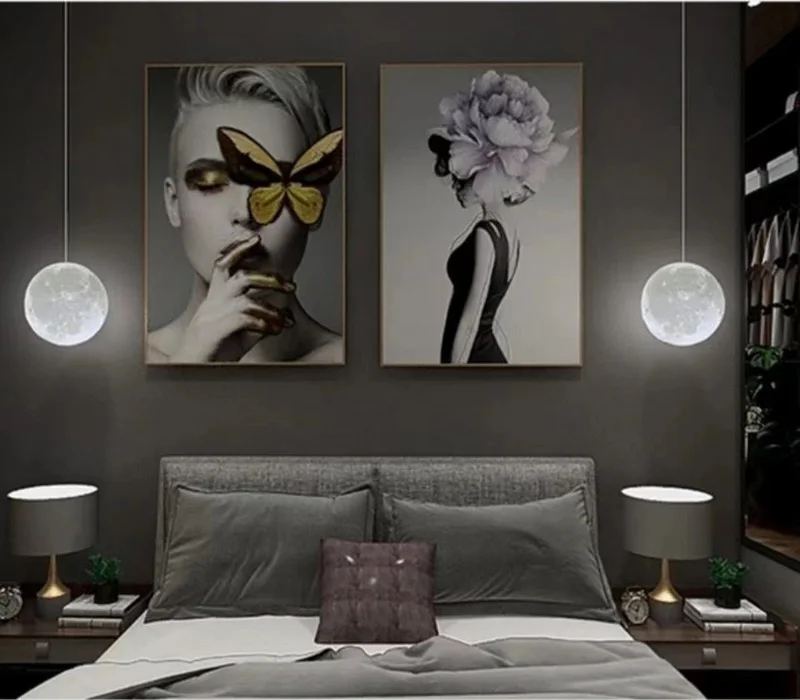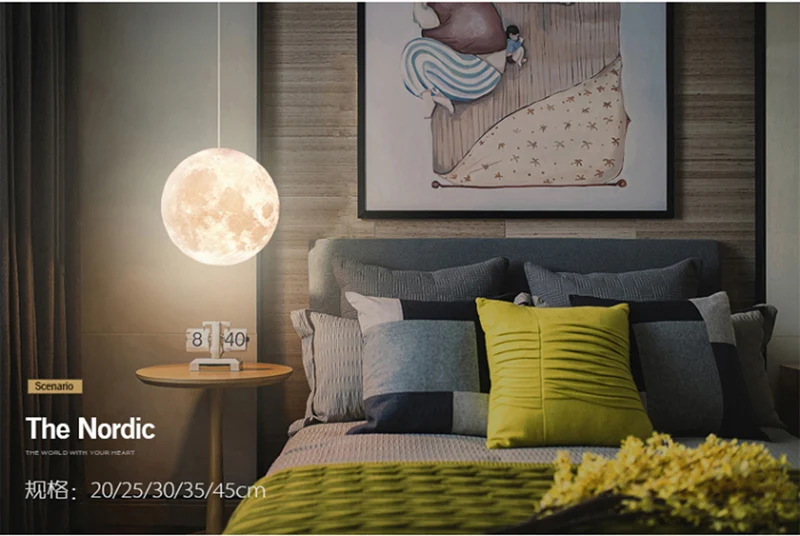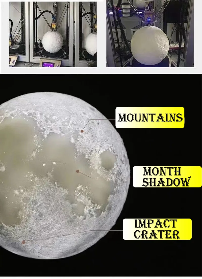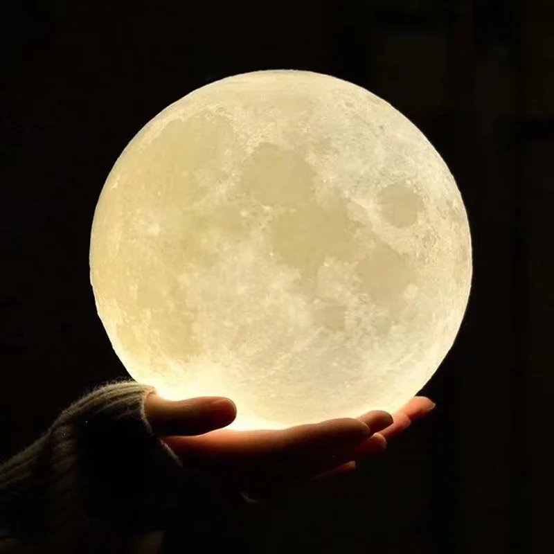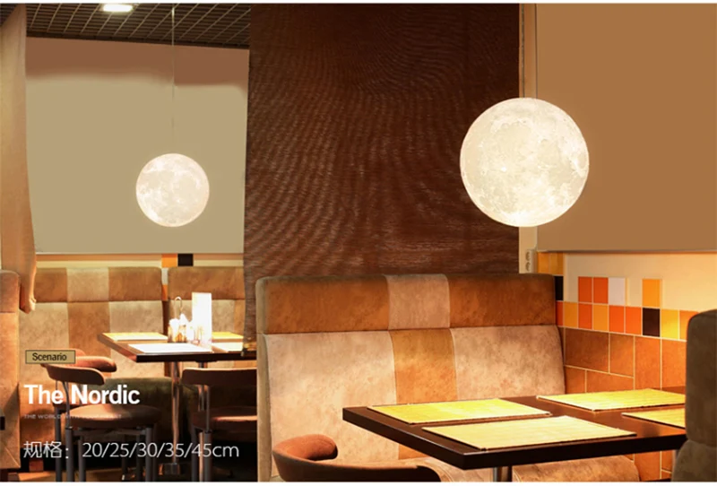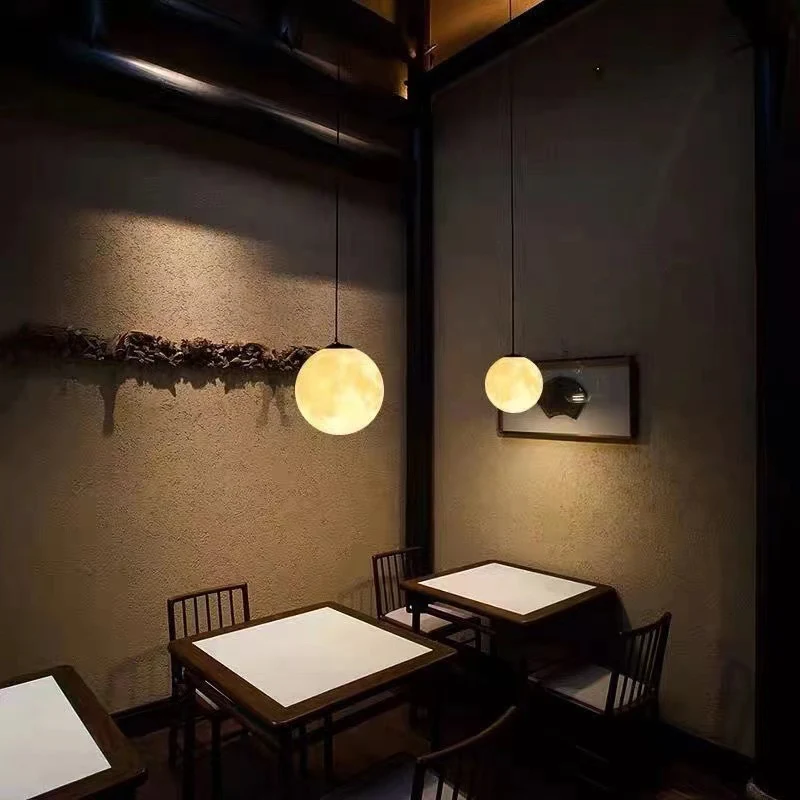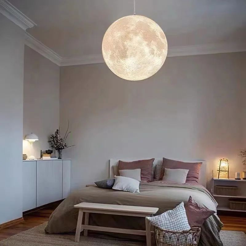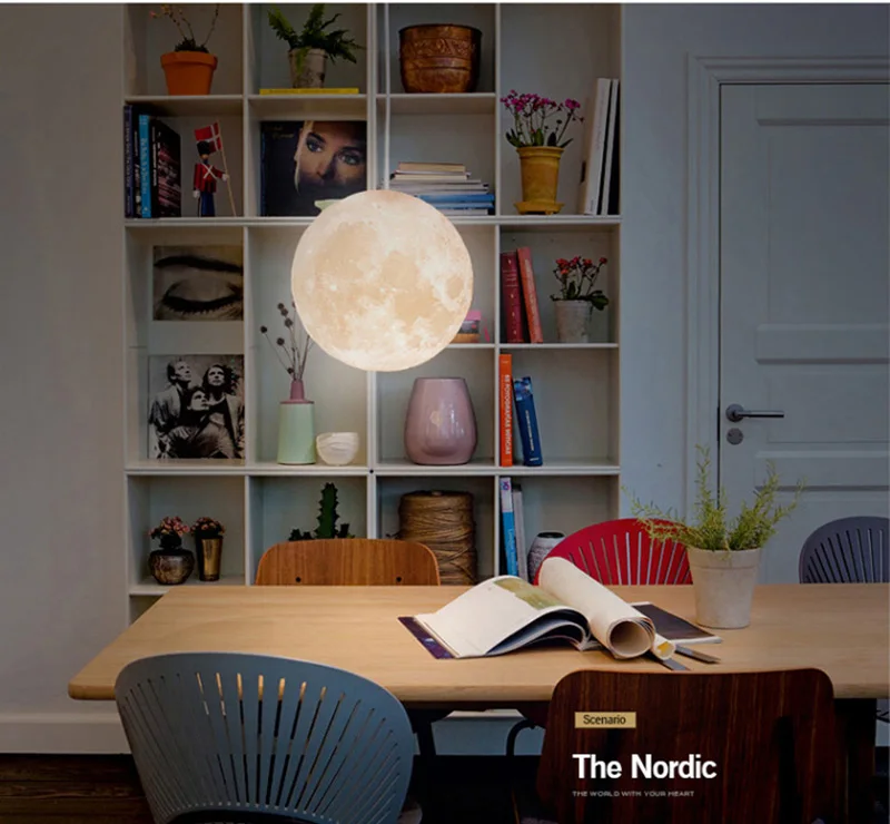 Creative 3D printed moon chandelier 15W 3 Color change light simple bedroom children's room restaurant bar commercial ball lamp