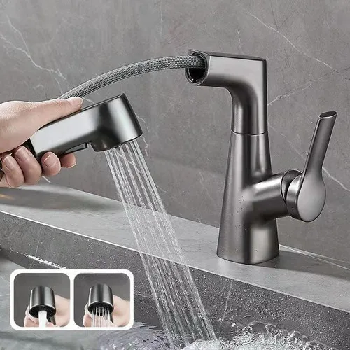 Customizable Bathroom faucet with rotating and retractable shower