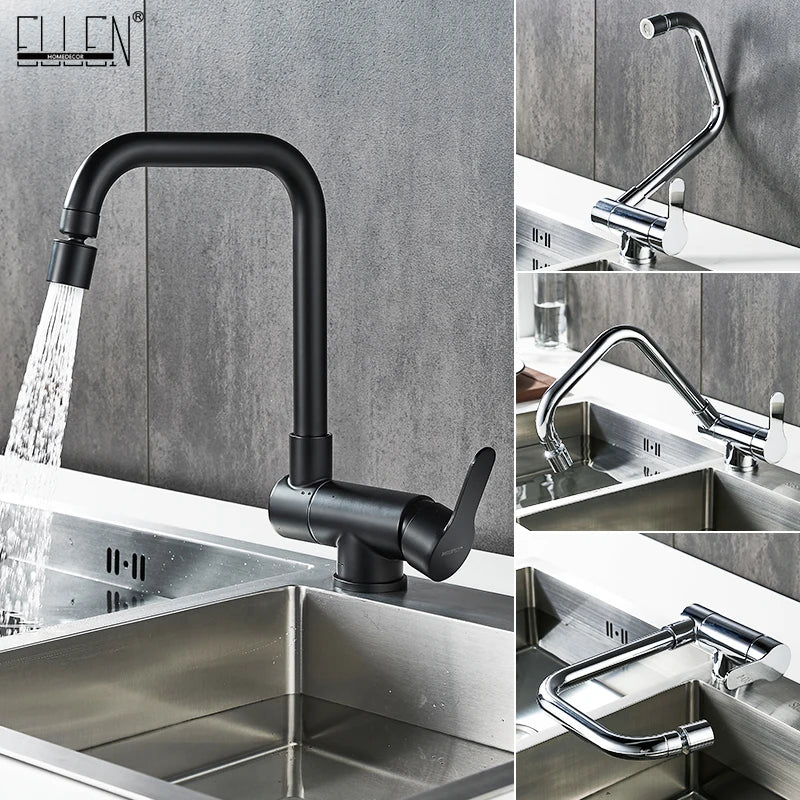 Deck Mounted Black Kitchen Faucets Pull Out Hot Cold Water Filter Tap for Kitchen Two Ways Sink Mixer Kitchen Faucet EL9005