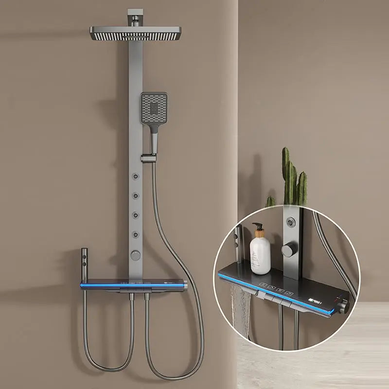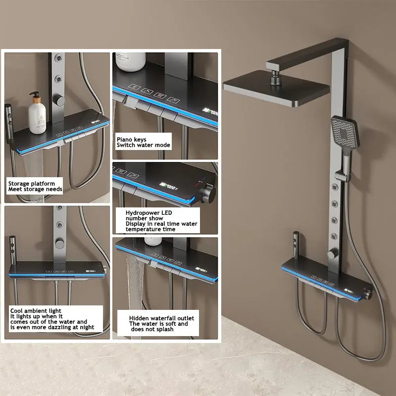 Digital Display Shower Set Bathroom Ambient Light Five-Function Back Spray Shower Faucet Gray Shower System Package