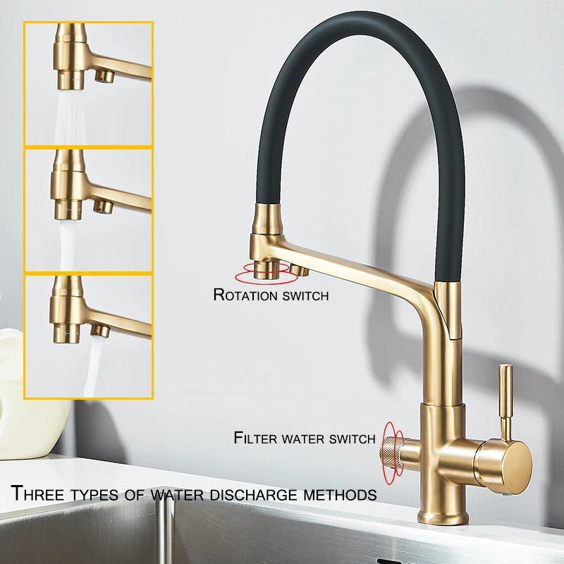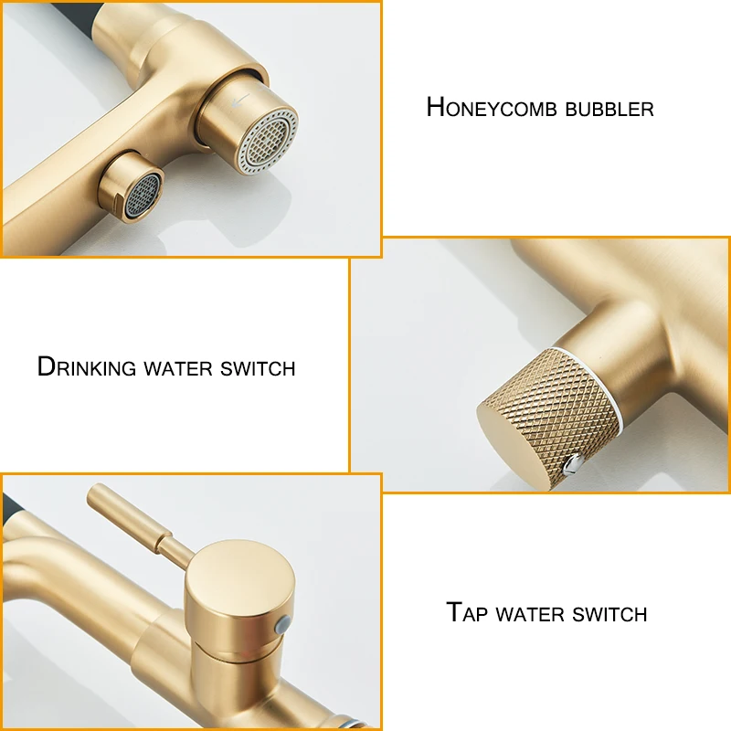Drinking Water Kitchen Faucet Pull Down Sprayer 360 Rotate Mixer Tap Deck Mount Filtered Water Tap Hot Cold Water Crane