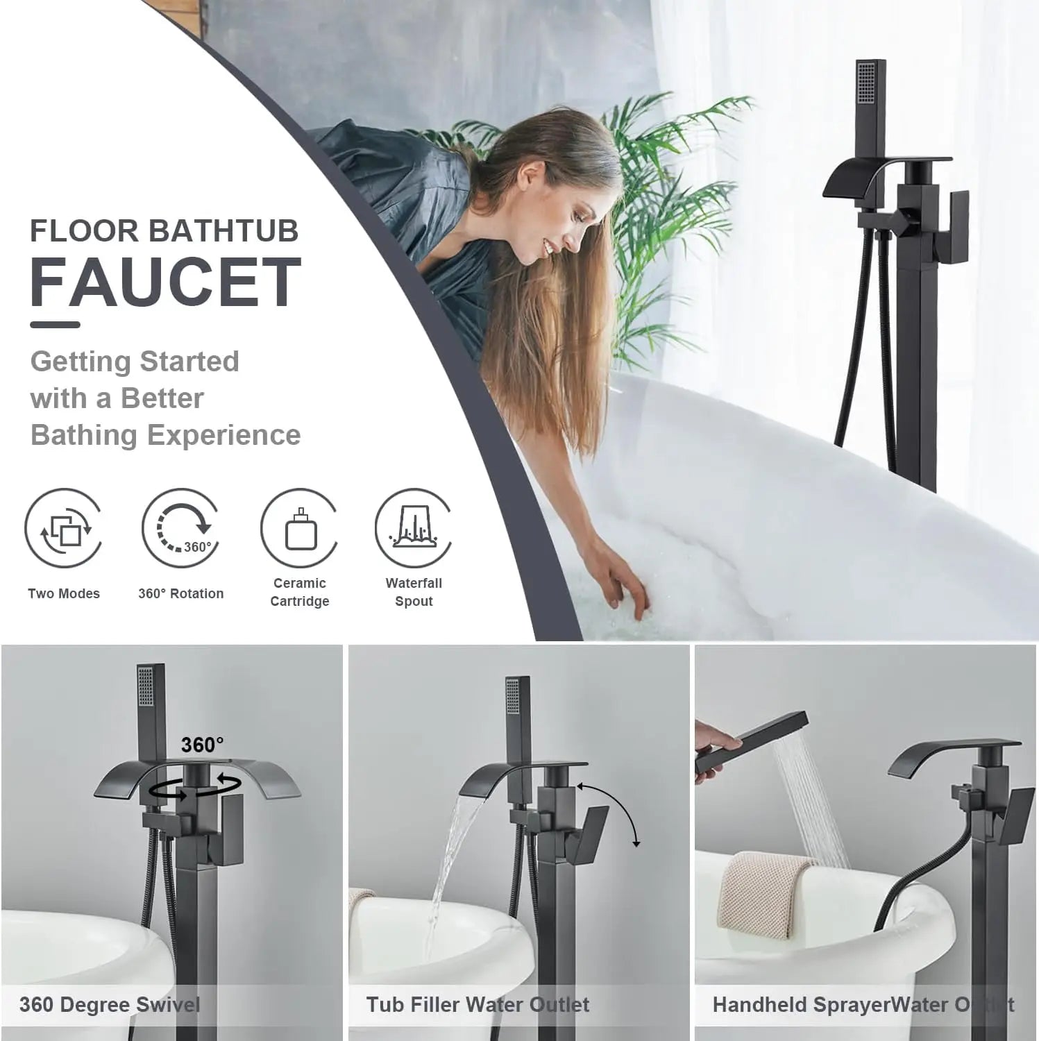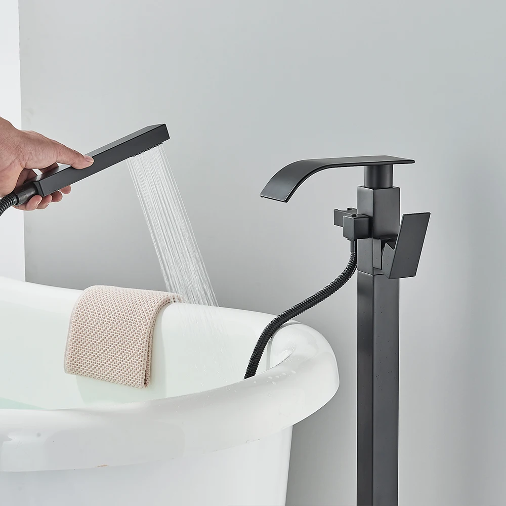Name: Quyanre Black Bathtub Floor Stand Faucet Mixer Single Handle Mixer Tap