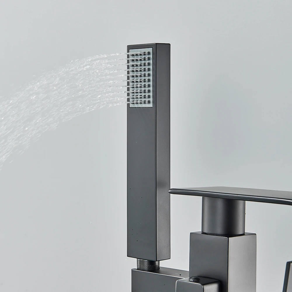 Floor Standing Faucet Bathtub Shower Floor Mounted Tub Filler Faucet Brass Bathroom Tub Faucets with Hand Shower