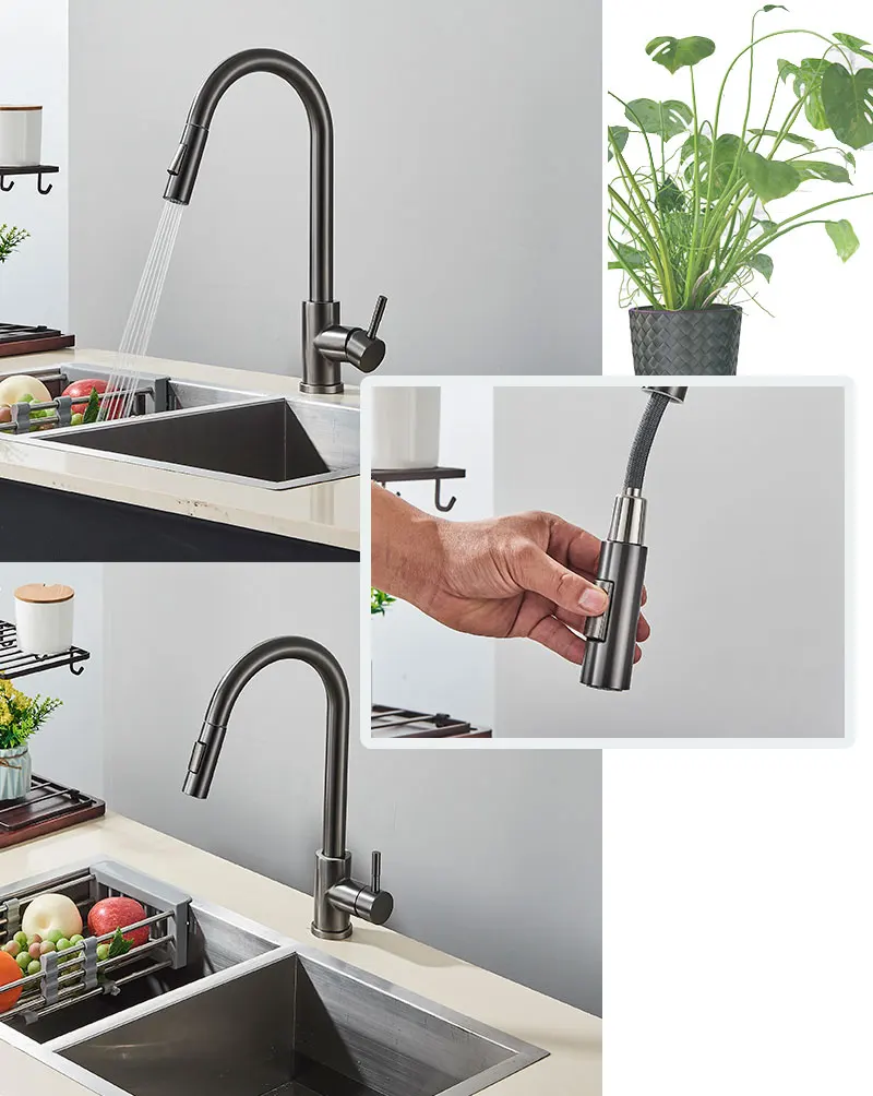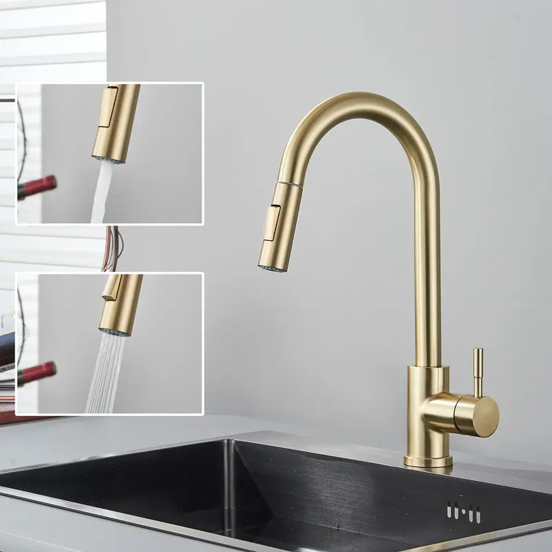 FMHJFISD Kitchen Faucet Brushed Gold Pull Out Kitchen Sink Water Tap Single Handle Mixer Tap 360 Rotation Kitchen Shower Faucet