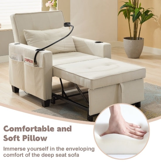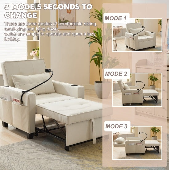 Futon Chair Bed Convertible Chair 3-in-1 Pull Out Sleeper Chair Beds With USB Ports,Wear-resistant And Anti-scratch, Armchair Bed Sleeper For Living Room,Grey.