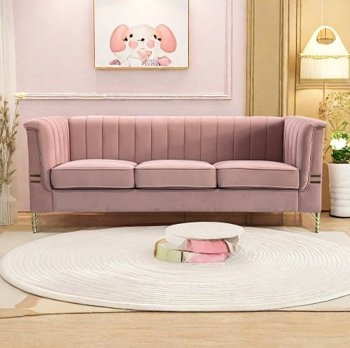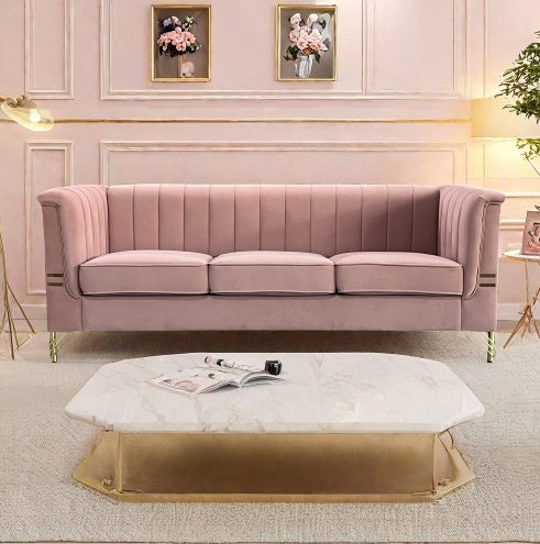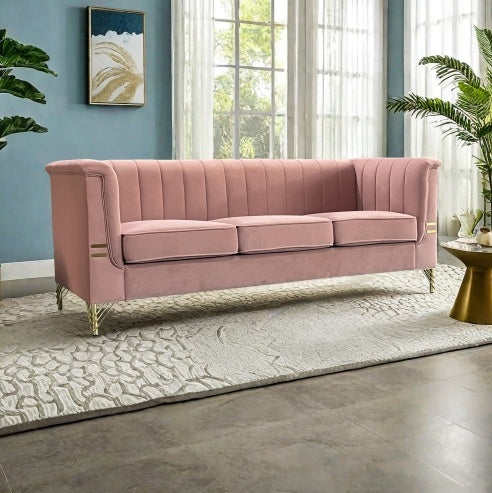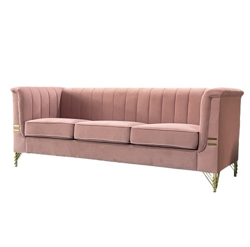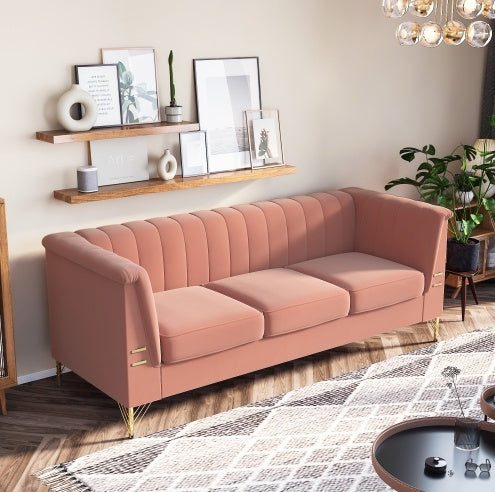 FX-P82-PKSOFAModern Designs Velvet Upholstered Living Room Sofa, 3 Seat Sofa Couch With Golden Metal Legs For Home, Apartment Or Office Pink SOFA