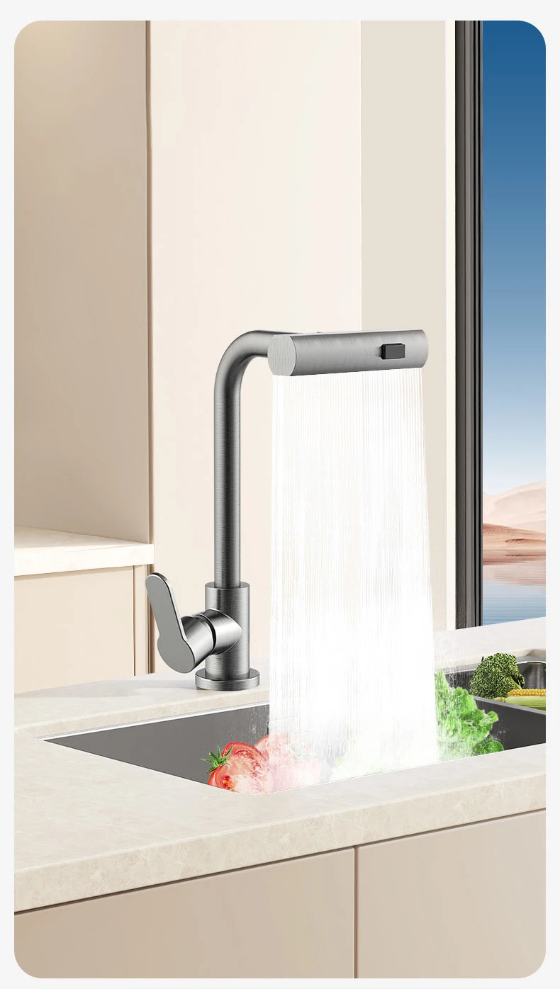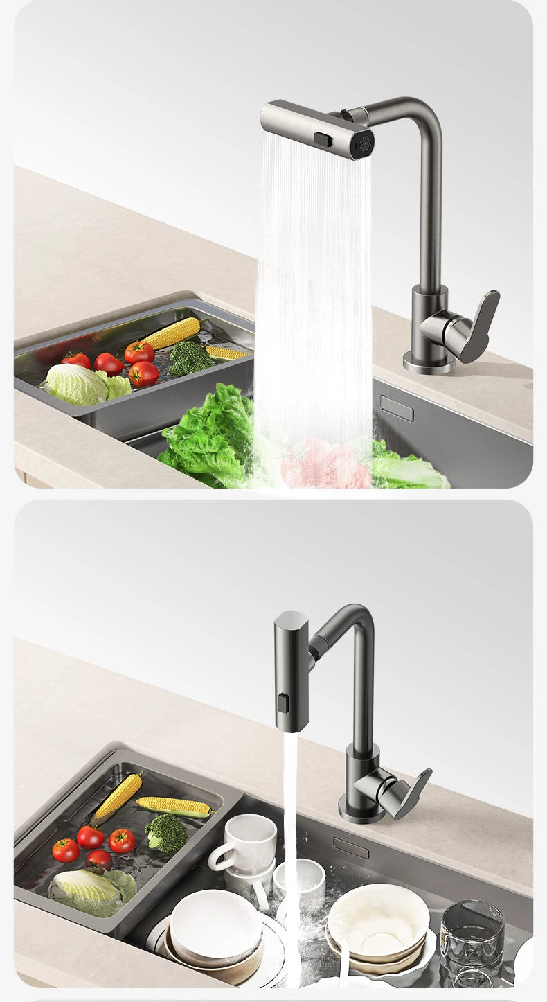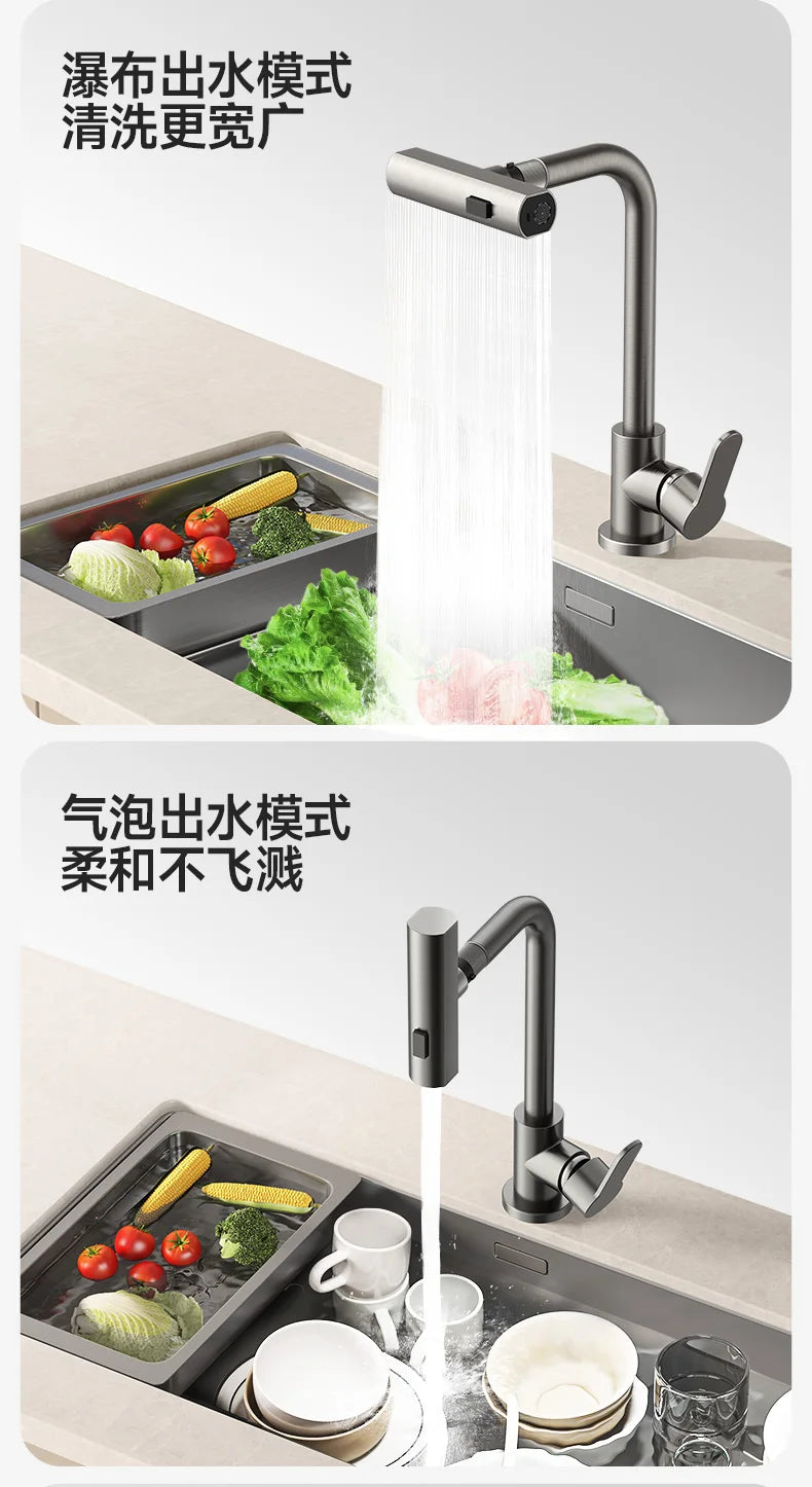 Gray Kitchen Faucets Pull Out Rotation Waterfall Stream Sprayer Head Hot -Cold Water Faucet Wash Basin Rotation Water Tap