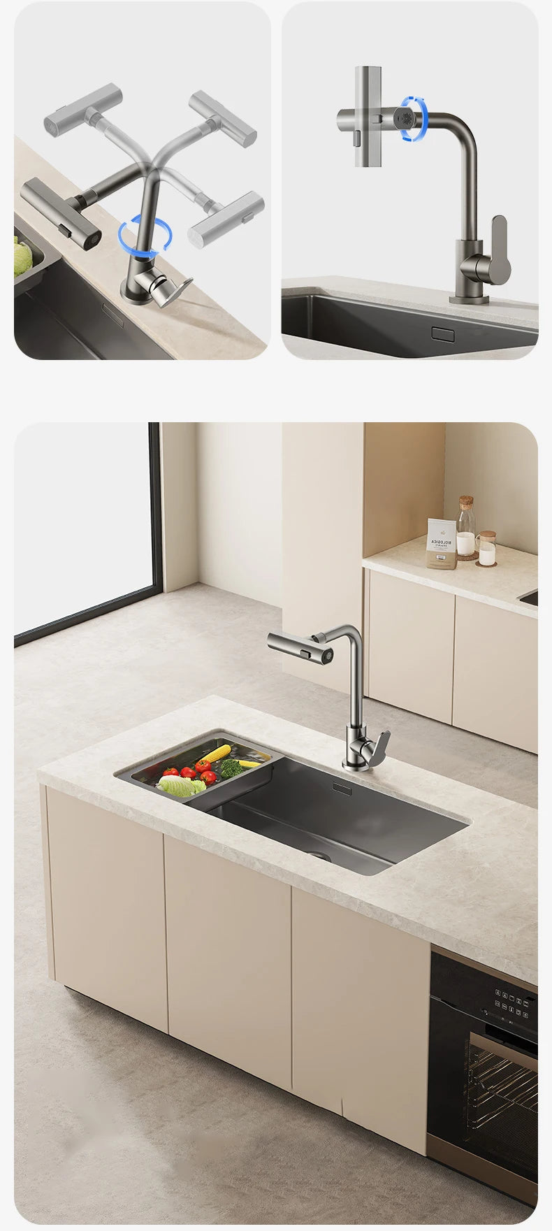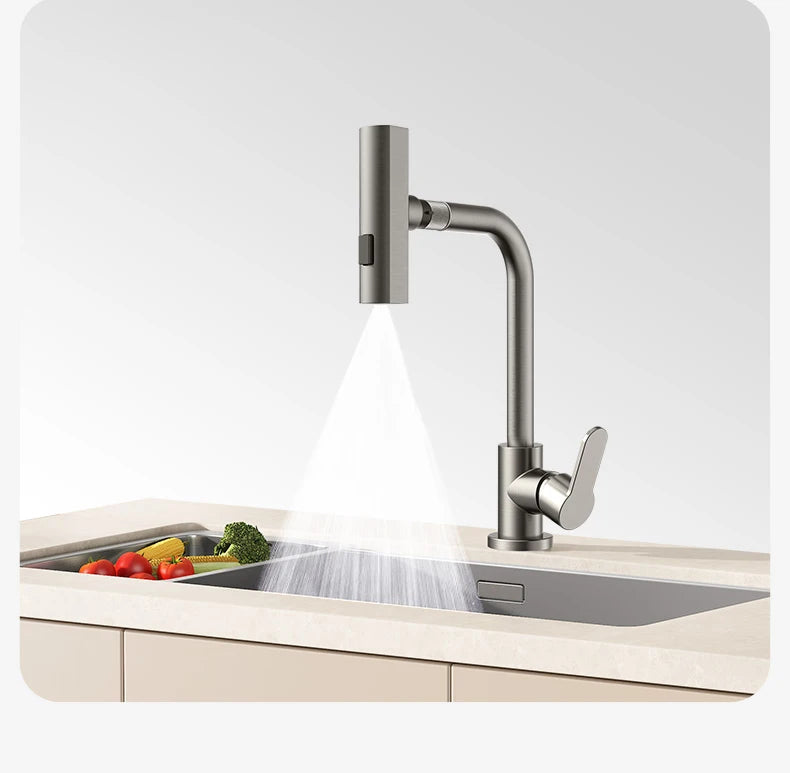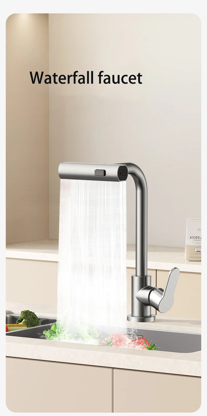 Gray Kitchen Faucets Pull Out Rotation Waterfall Stream Sprayer Head Hot -Cold Water Faucet Wash Basin Rotation Water Tap