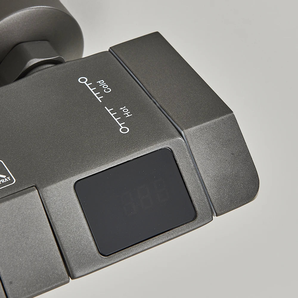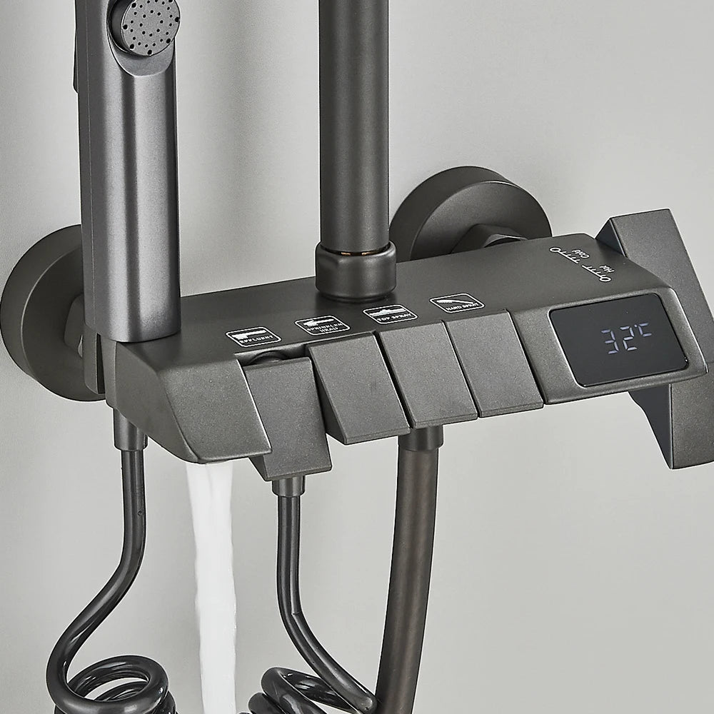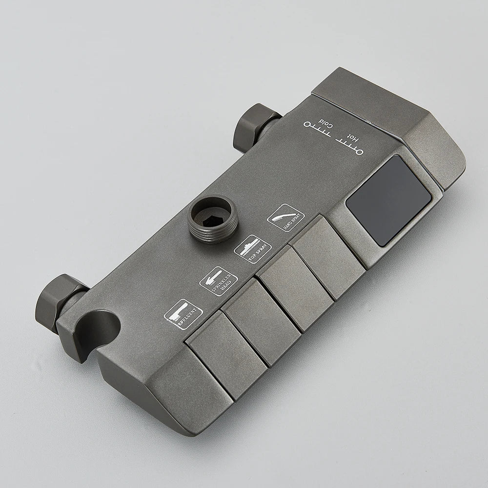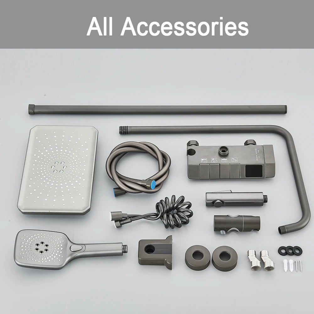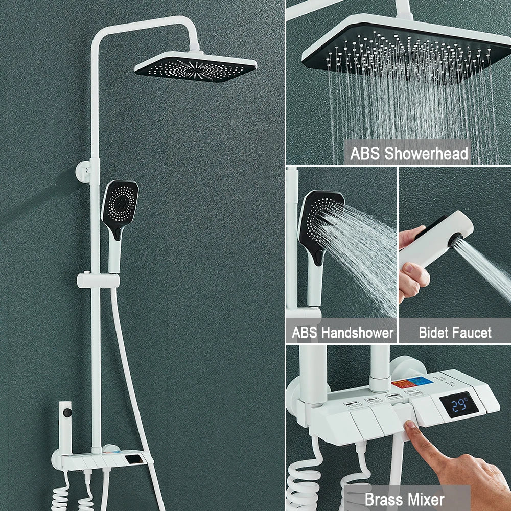 Grey Piano Digital Shower Set Intelligent Brass Bathroom Faucets Hot Cold Waterfall Tap Rainfall White Shower System Chuveiro