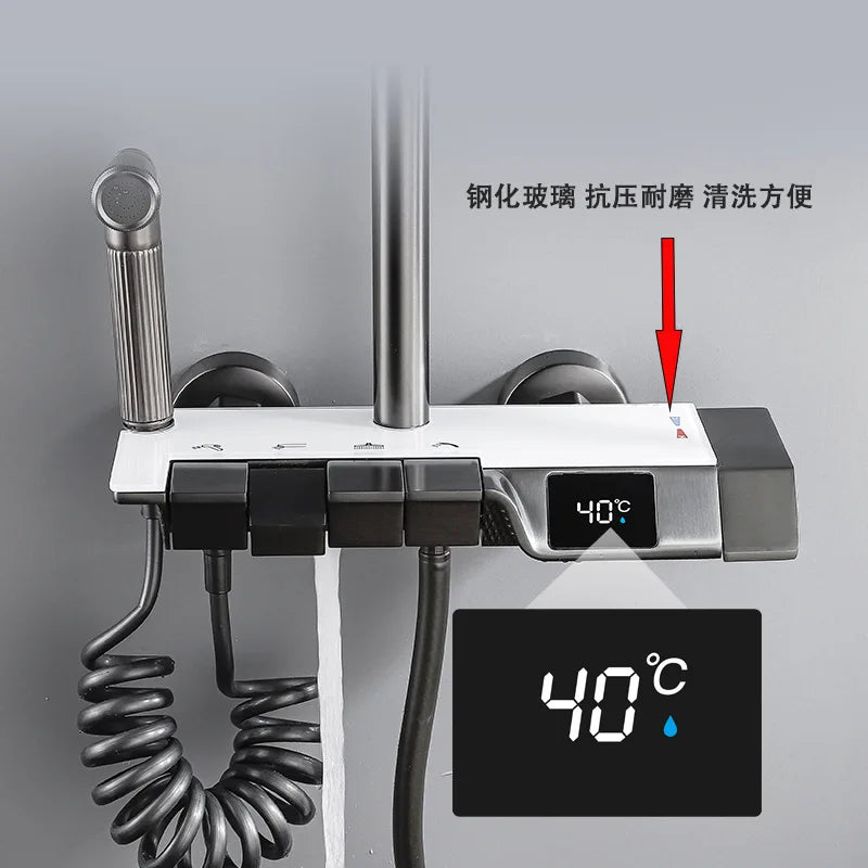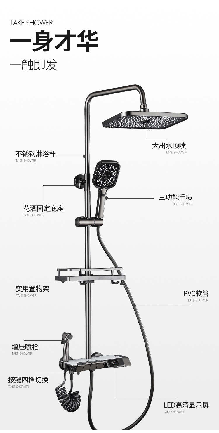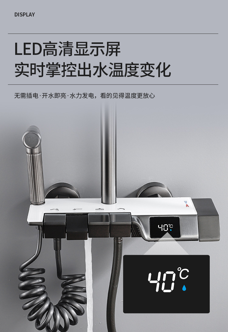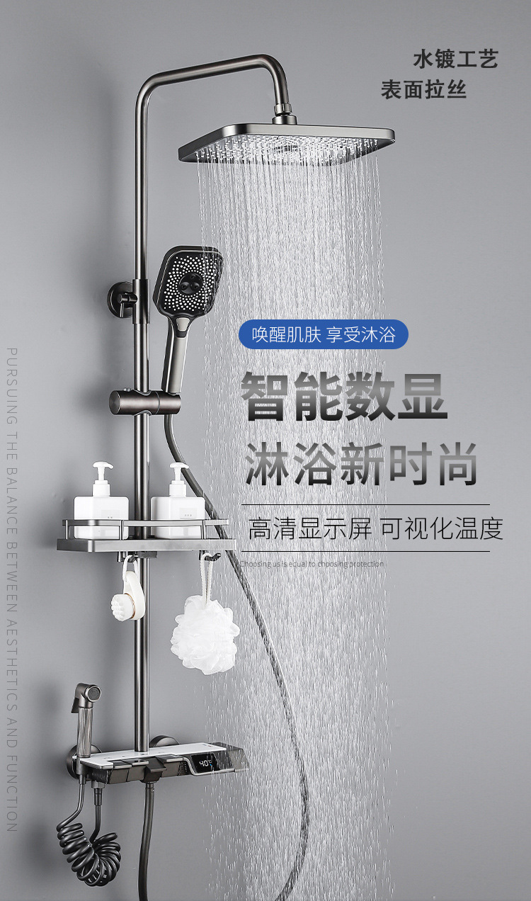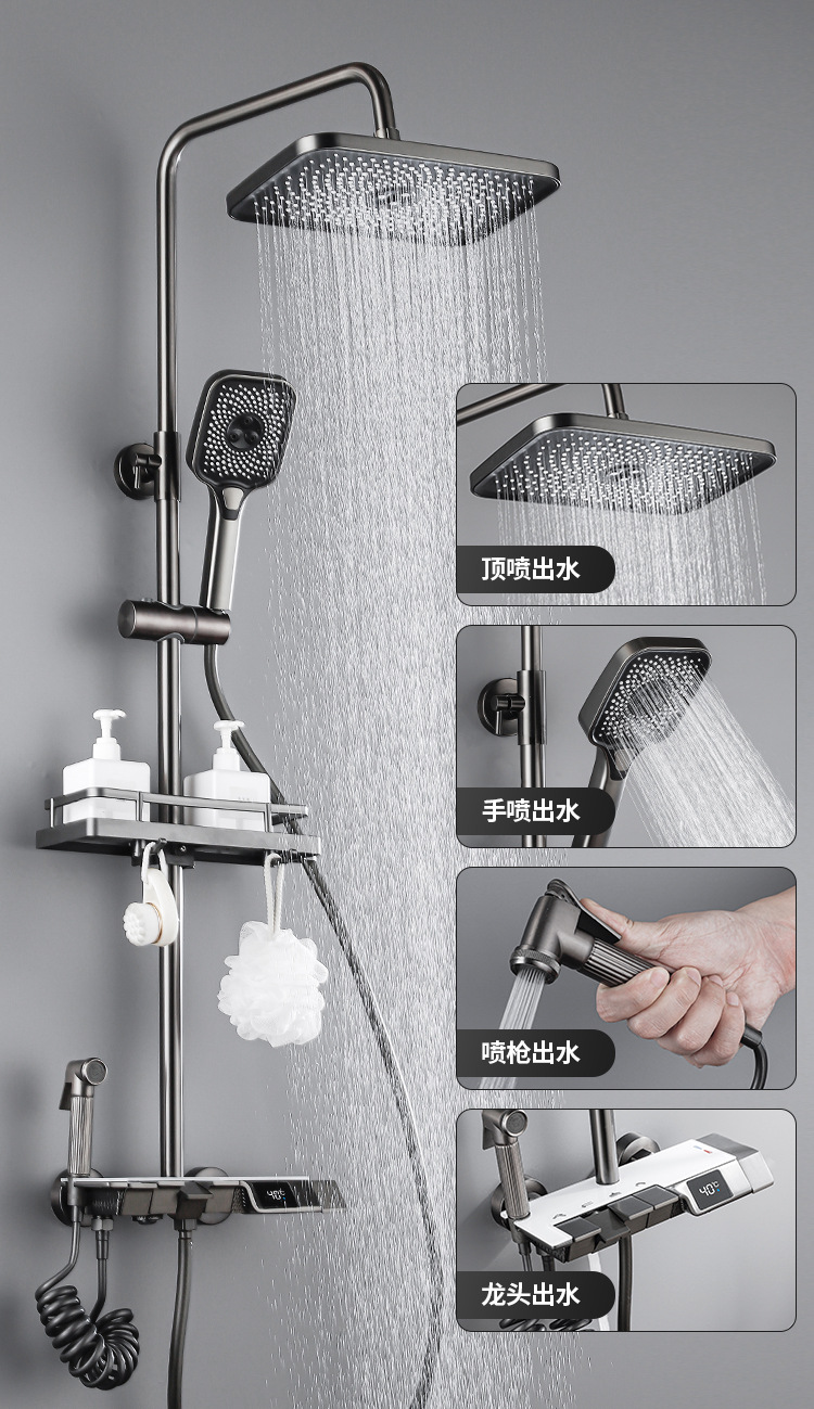 Grey shower set all copper piano intelligent shower set bathroom pressurized rain shower head CIR302CLE